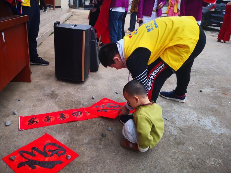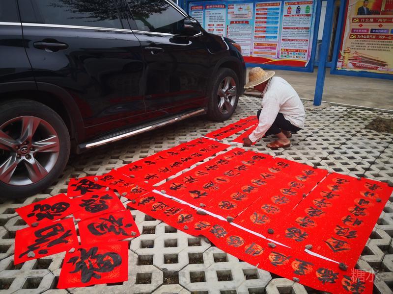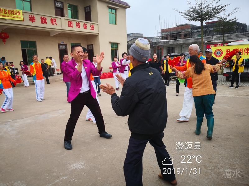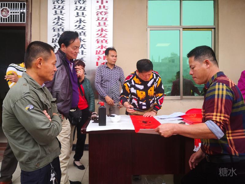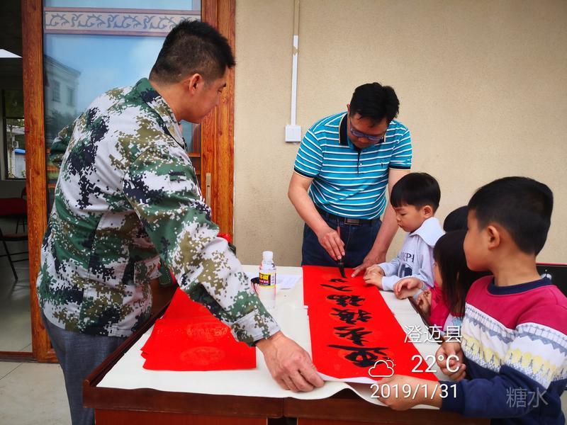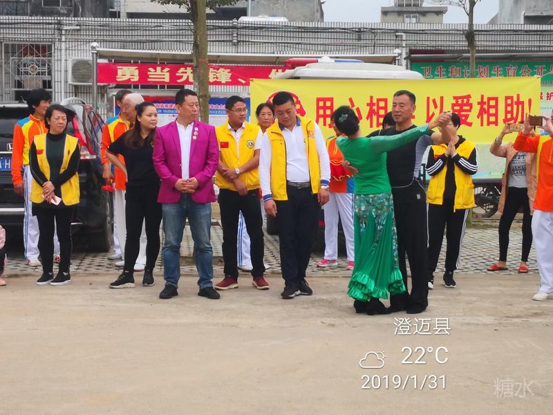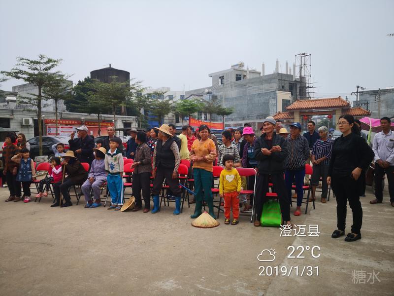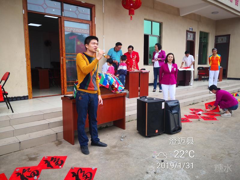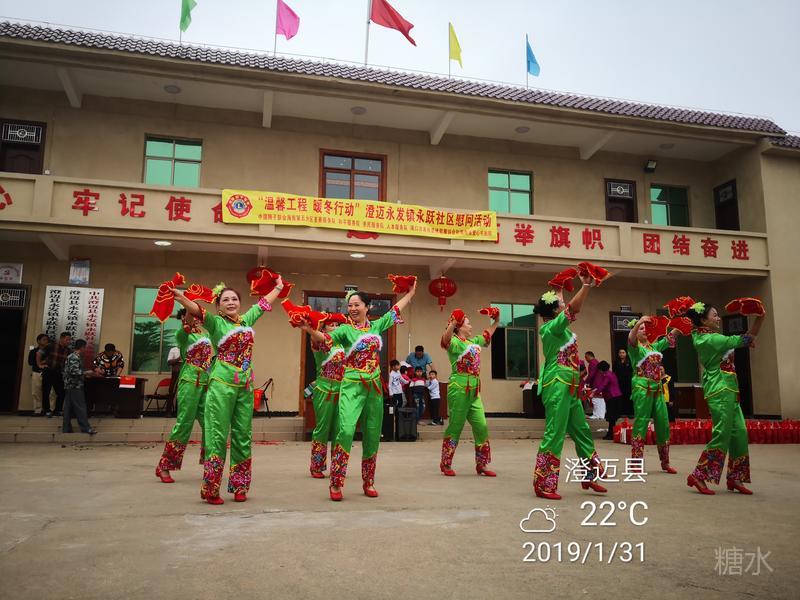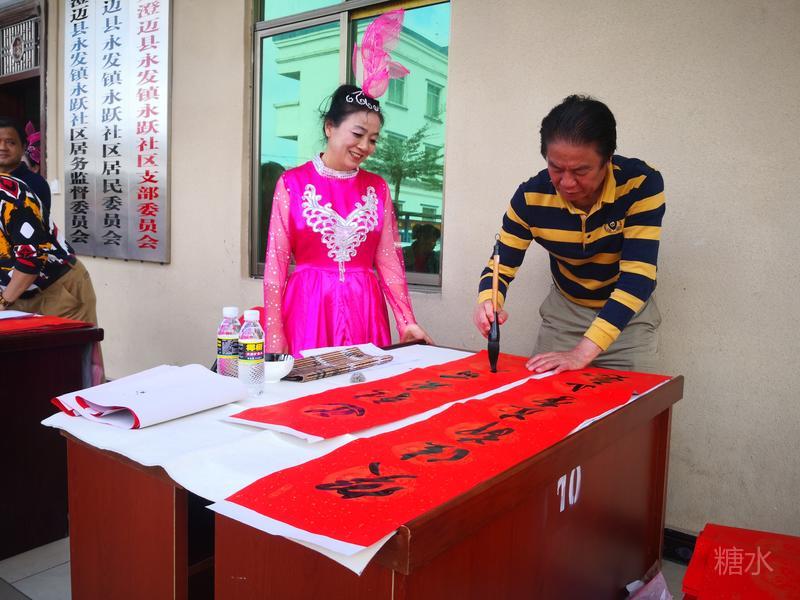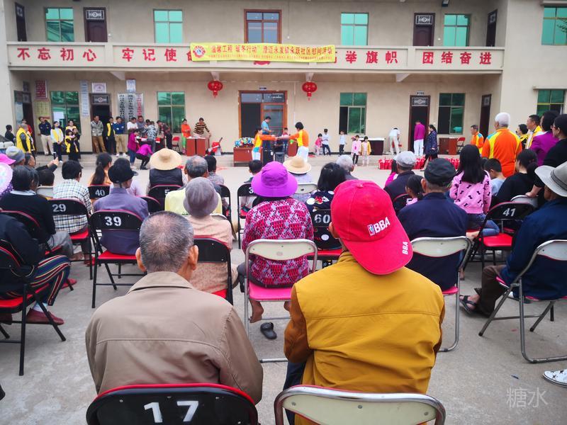 1月31日上午七点四十在海口老市委大院集合,六十多位志愿者自驾车八点出发前往澄迈县永发镇永跃社区,主办方购买大米、食用油、芝麻糊、营养麦片、核桃粉、金永丰佐料套装等赠送给35户孤寡老人和特困家庭。九点抵达永跃社区,物资组、书法组、文艺组、义诊组立即投入准备工作。