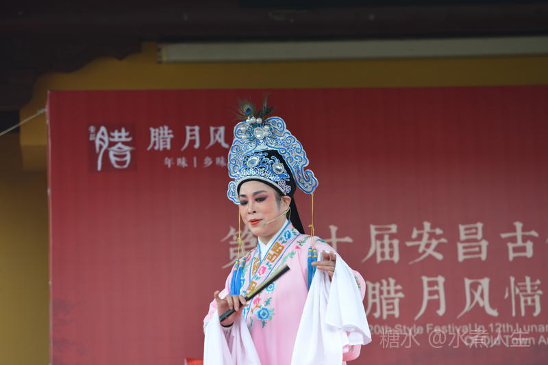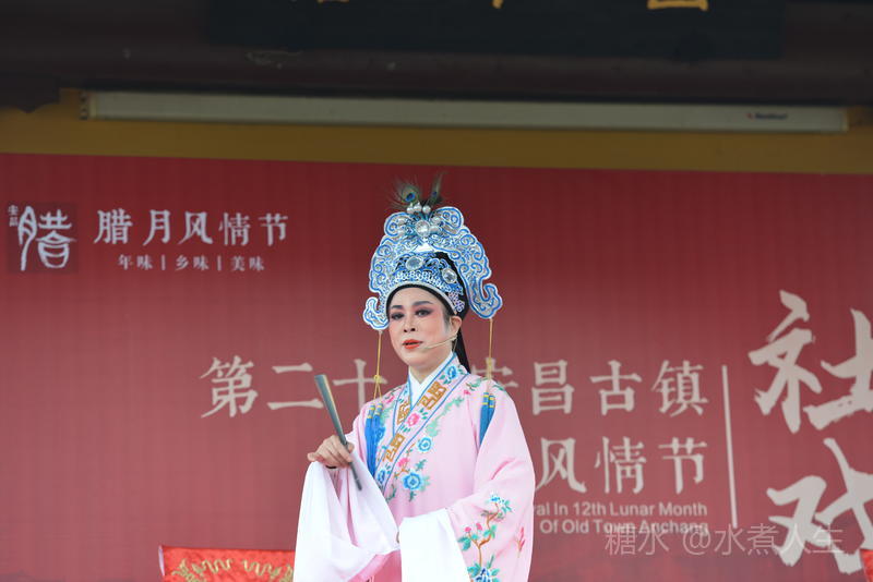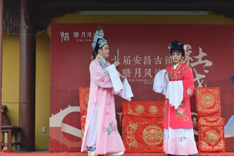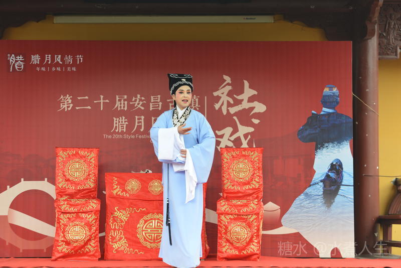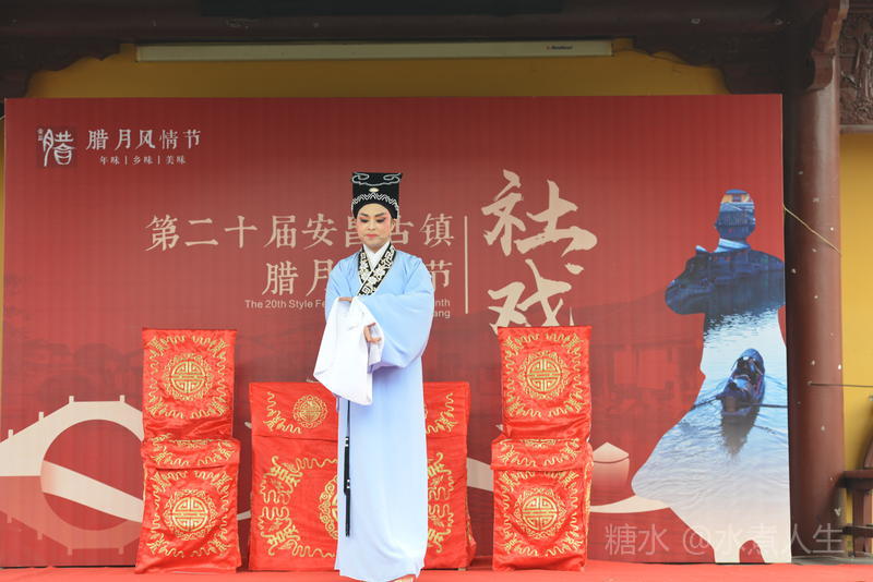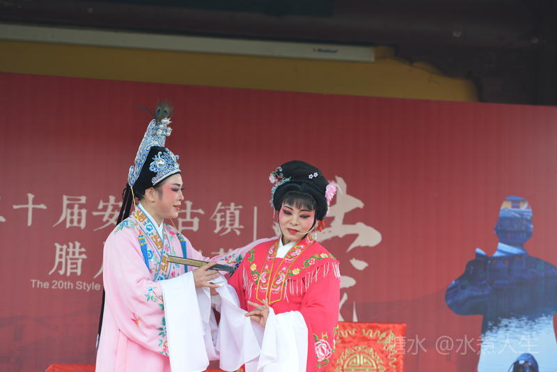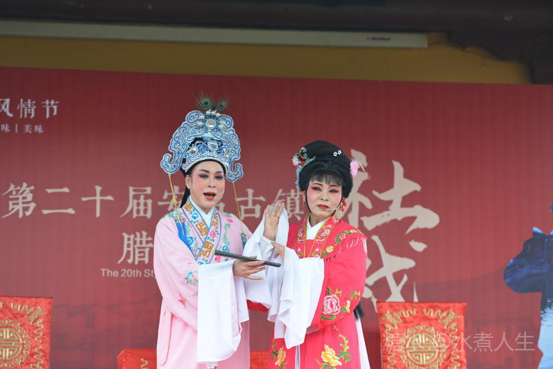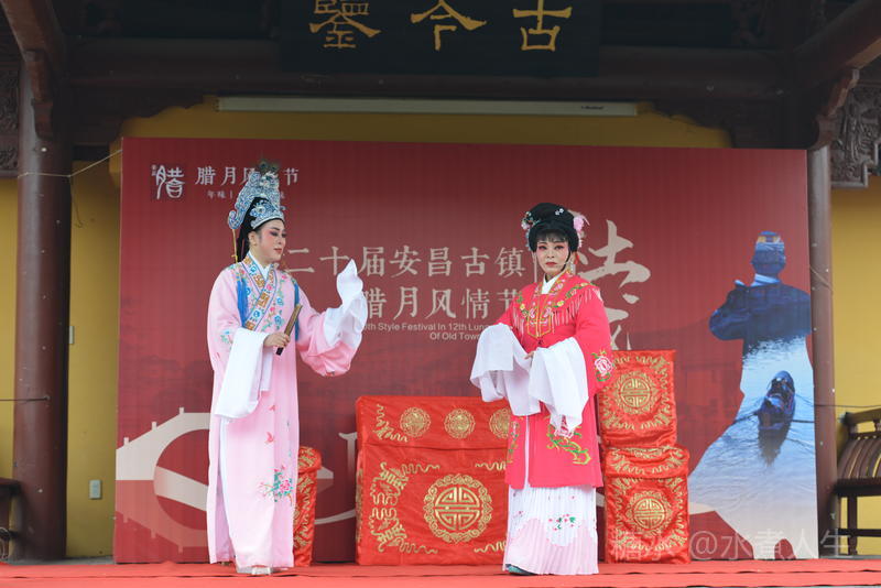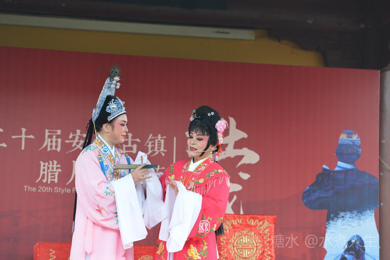 古镇多处有戏台。在城隍庙前的戏台上正表演者社戏。