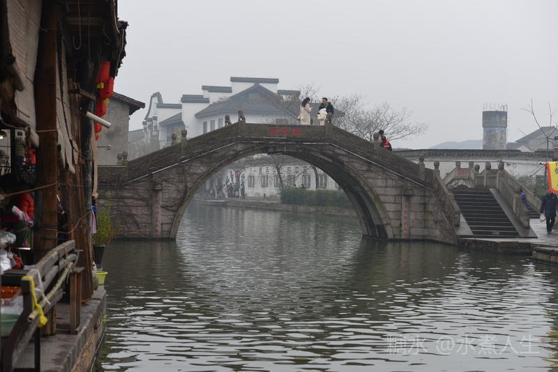 古镇依河而建,南为居民,北为商市。两岸间以诸多石桥相连,可通南北。