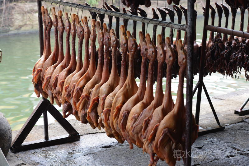 商店门前晒着酱鸭,供游客选购。