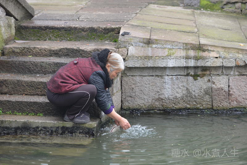 临近中午时分,居然看见一老婆婆在河边旁若无人的洗鱼,估计她算是古镇上的原住民了。