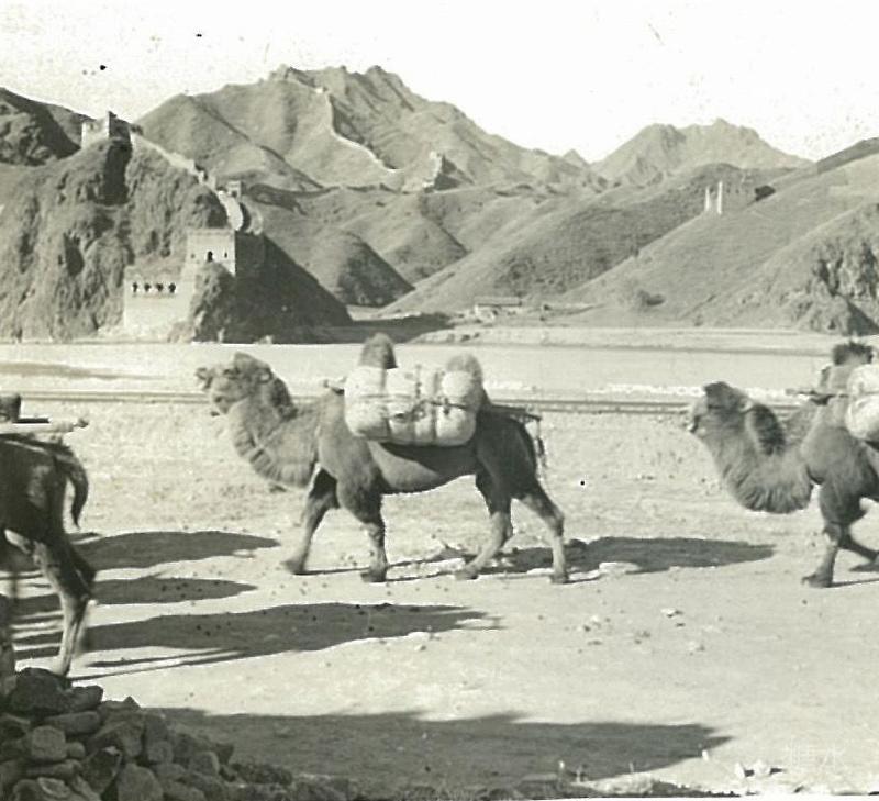 姊妹楼前潮河滩上的骆驼 1940年