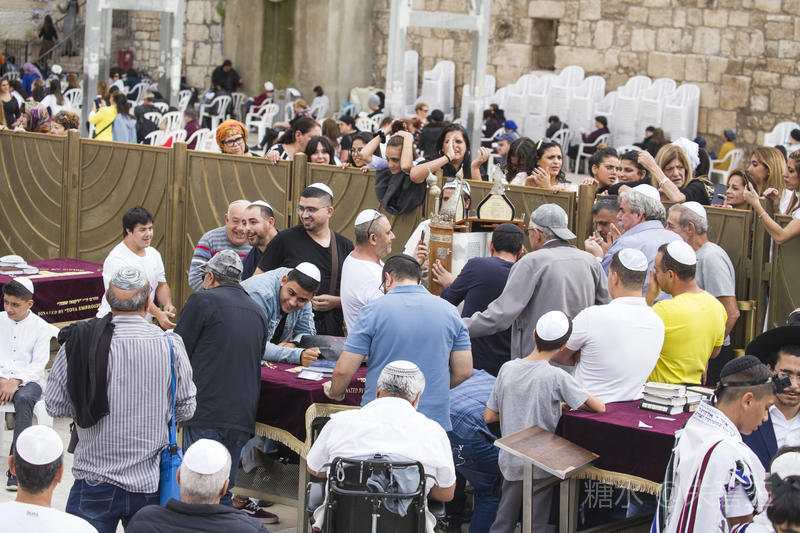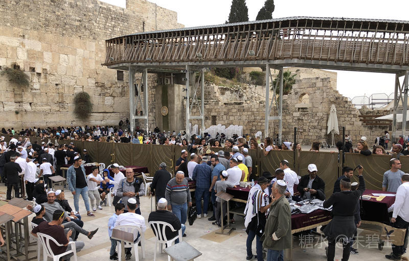 每天来西墙的信徒和游客很多,进入西墙要排很长的队。