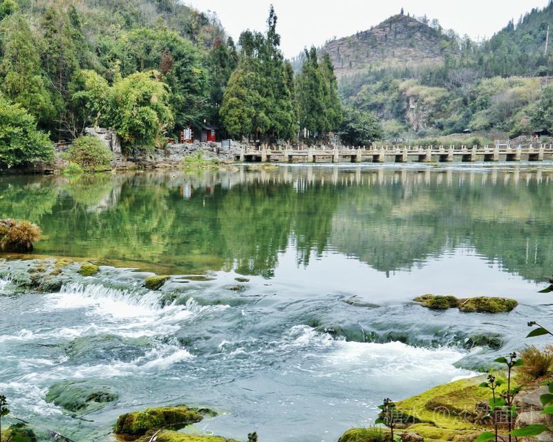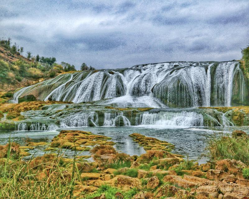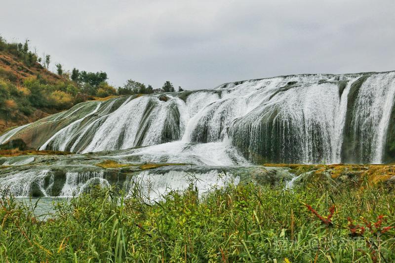 陡坡塘瀑布顶上是一个面积达1.5万平方的巨大溶潭,瀑布则是形成在逶迤100多米长的钙化滩坝上。