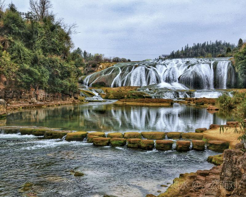 陡坡塘瀑布位于贵州省黄果树瀑布上游1公里处,在安顺市镇宁布依族苗族自治县境内,电视剧《西游记》片尾曲《敢问路在何方》,唐僧师徒涉水经过的陡坡塘瀑布。