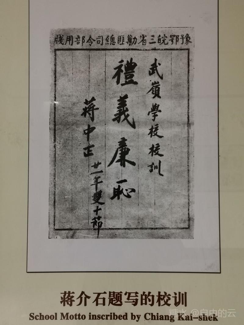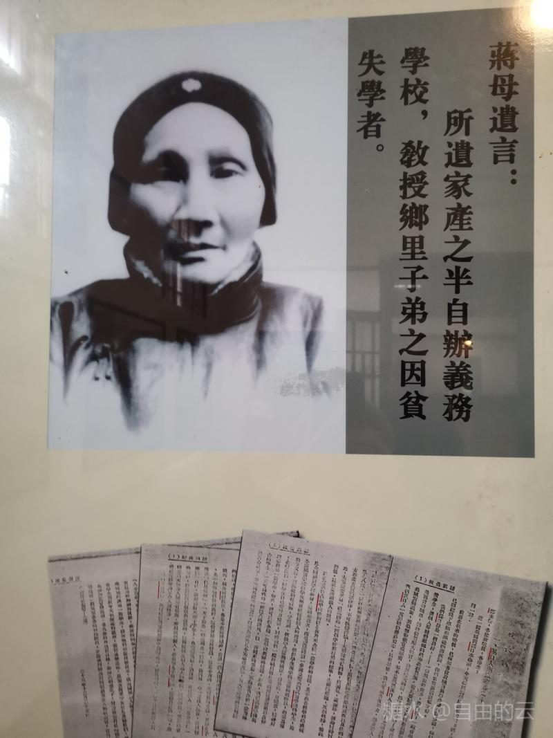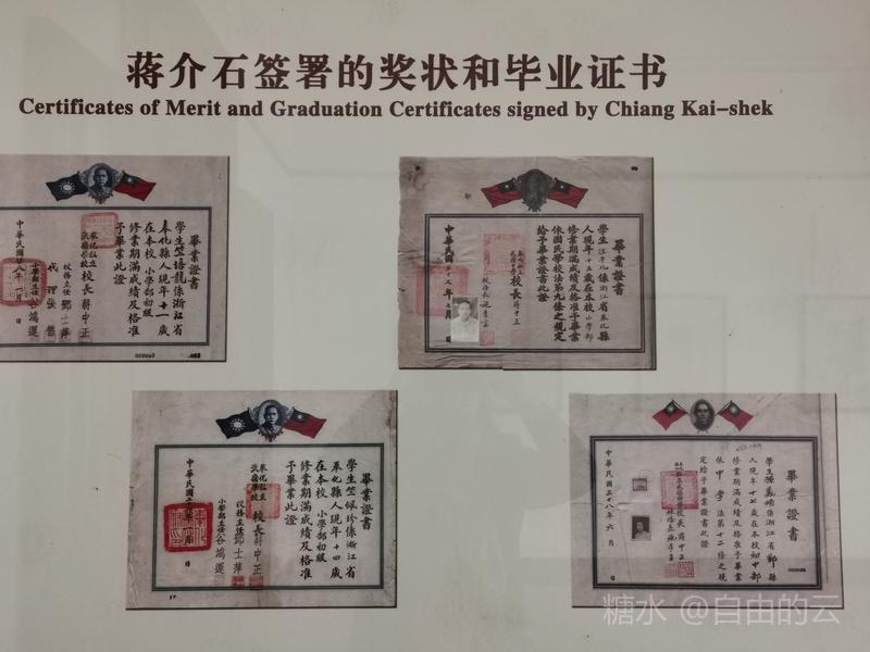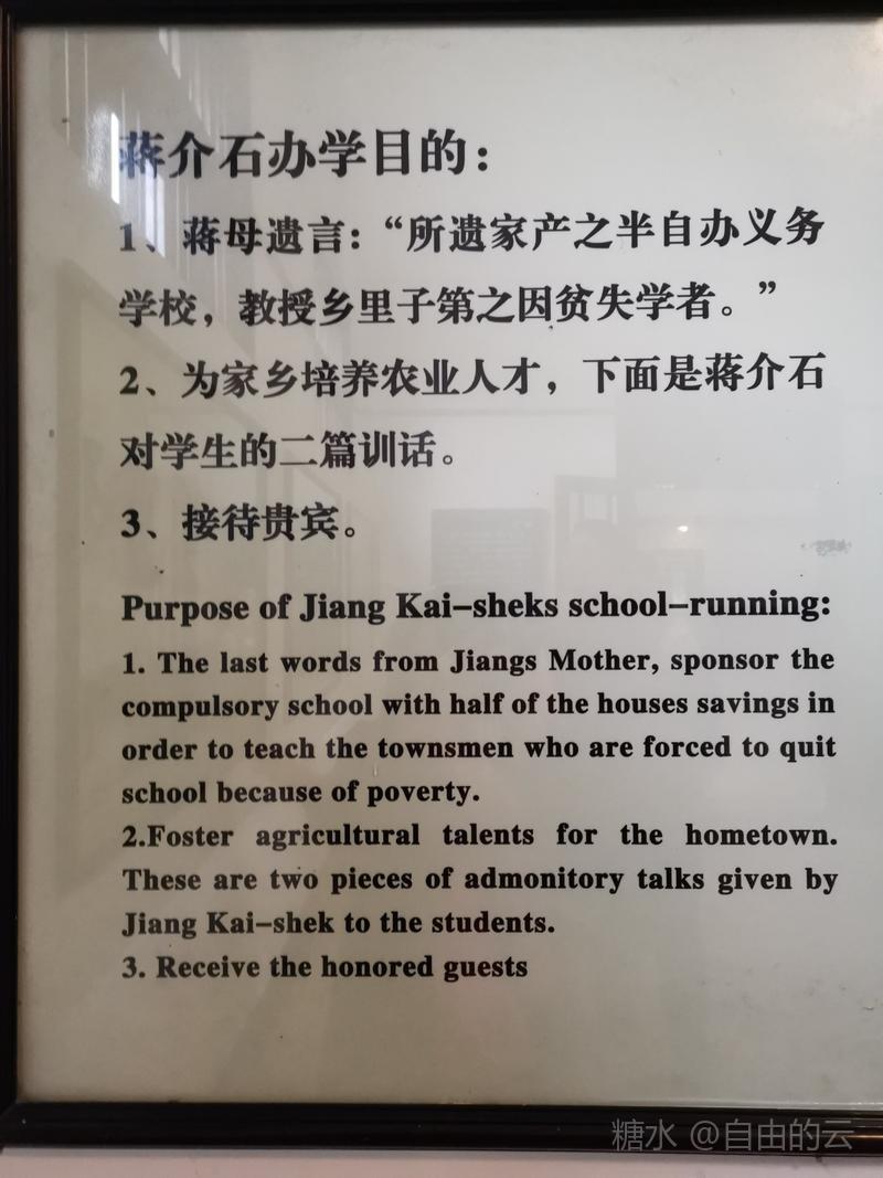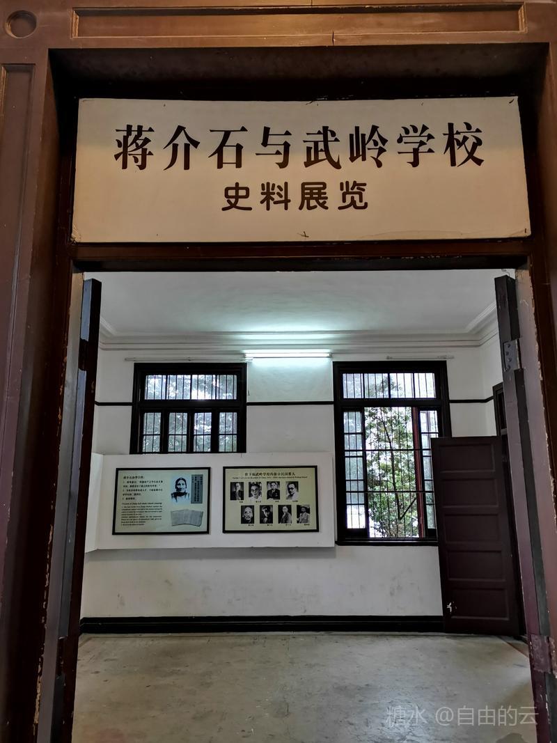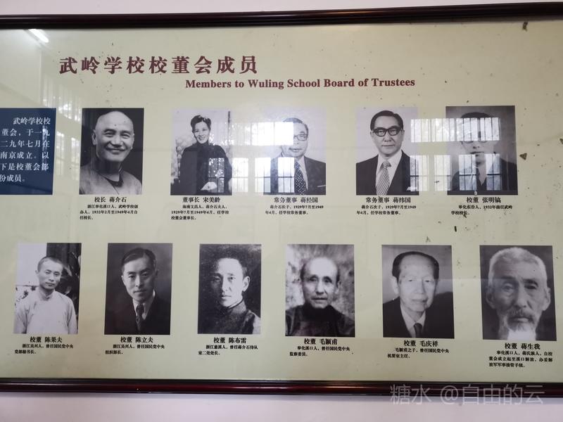 学校展览馆里详细介绍了,1925年春,已在国民党革命军中成为风云人物的蒋介石秉承慈母遗命,整合当地地方教育力量,将三所小学合并为一,建立“禽孝区立小学”,聘张葆元先生出任校长,1927年7月学校改名为“私立武岭学校”,蒋介石亲书校匾,时有学生300多人,1929年2月学校扩建,1932年2月蒋介石亲任校长。