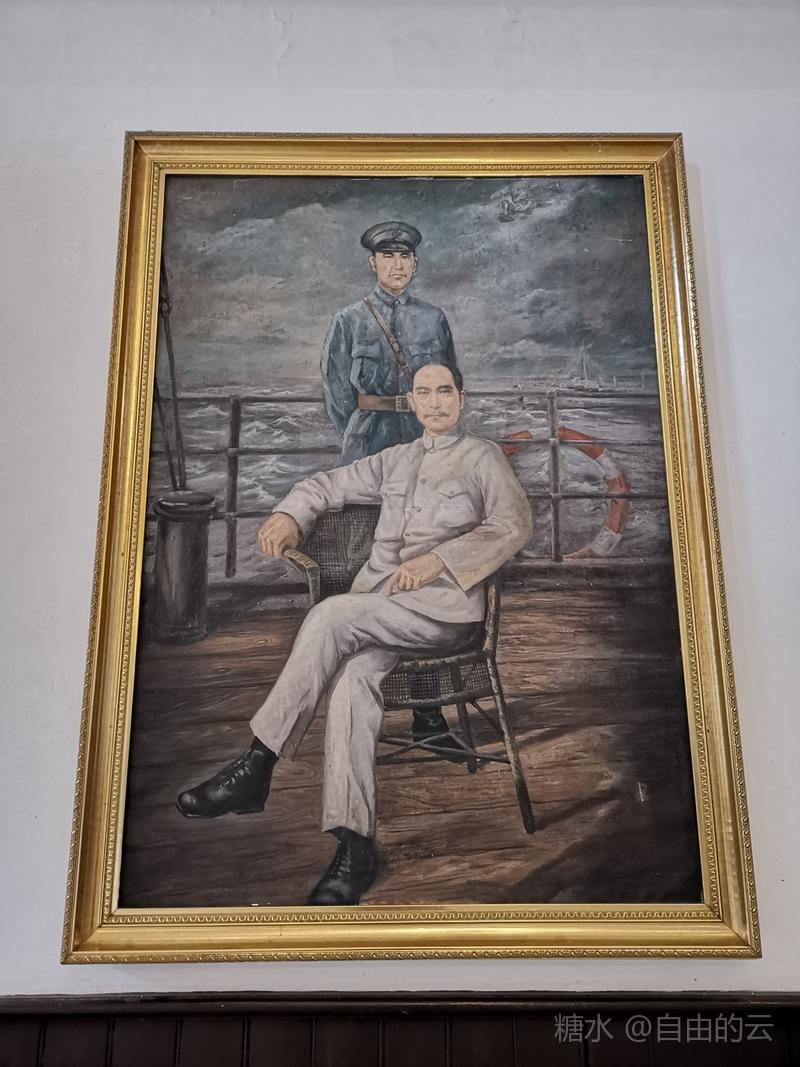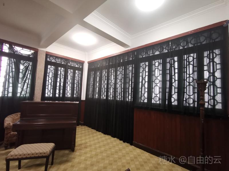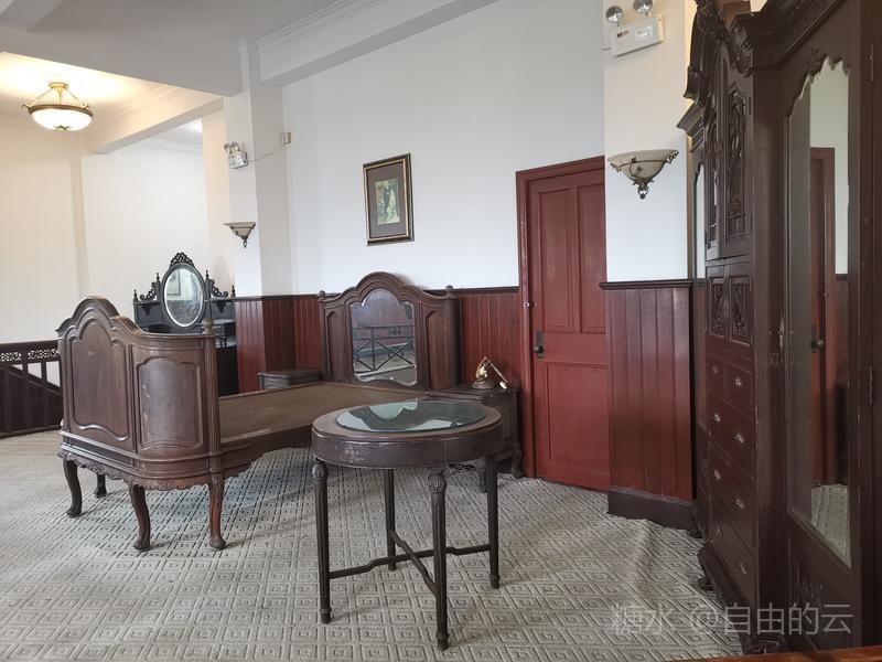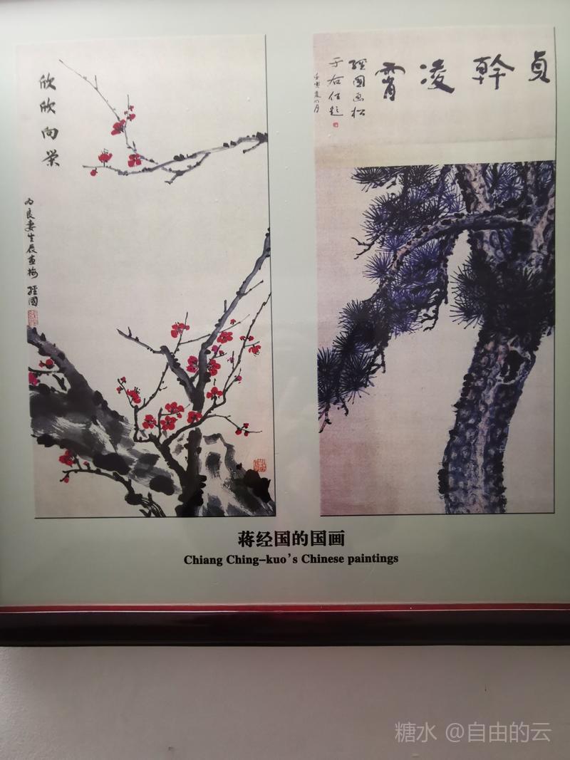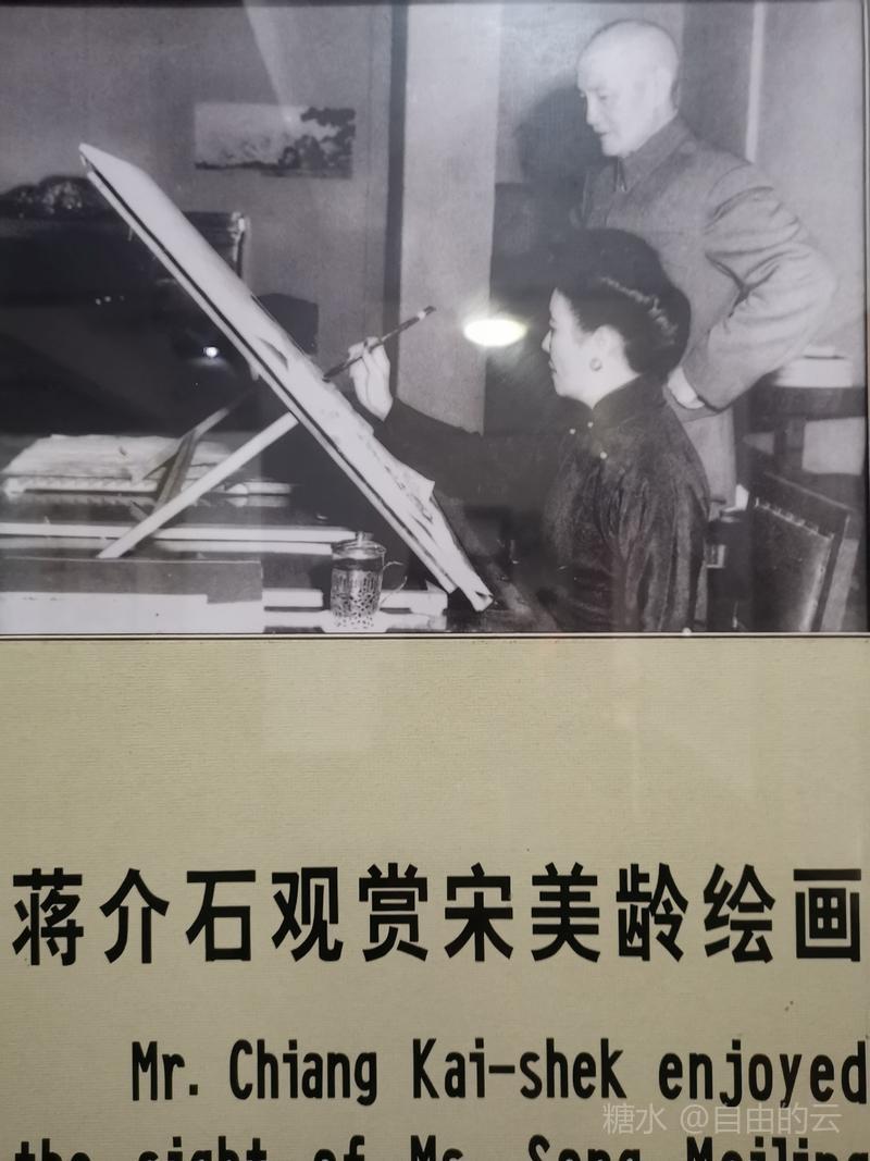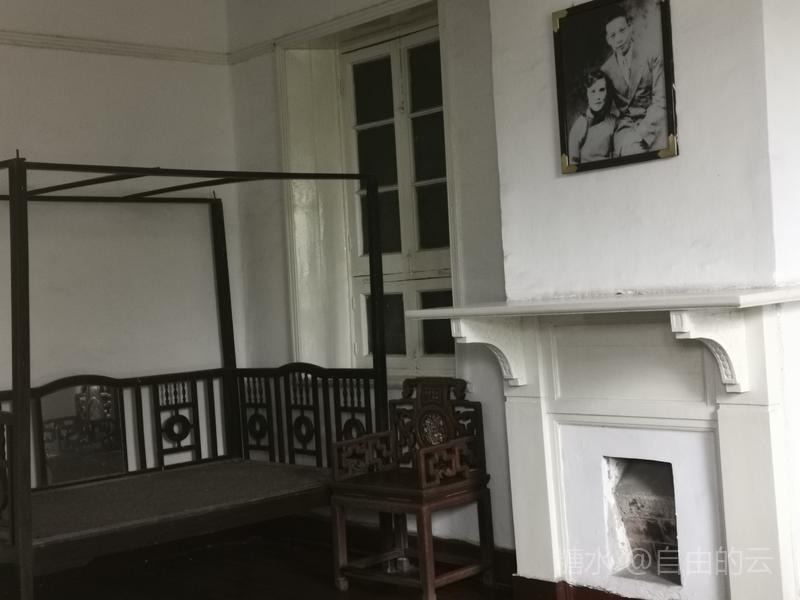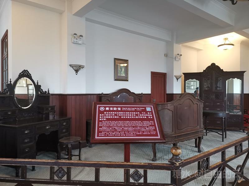 上得二楼为卧室与书房,室内展示蒋宋小住时的家具,墙壁上挂着宋美龄的画作。