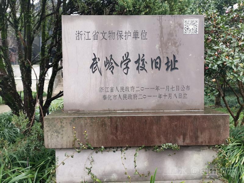 “武岭学校”在武岭门内侧,由蒋介石1929年创建,校舍由翁文涛设计,上海孙裕生营造厂承建,次年12月竣工,占地90余亩,有大礼堂,教学楼,宿舍,健身房40余幢,建筑面积1.4万平方米,布局疏落有致,绿化成荫,环境清幽。