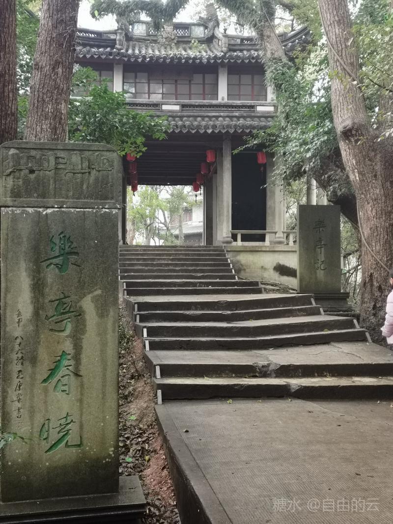 沿着幽静小路踏石阶而上,能看到路边蒋介石亲题《乐亭记》石碑,再向前便到了文昌阁。