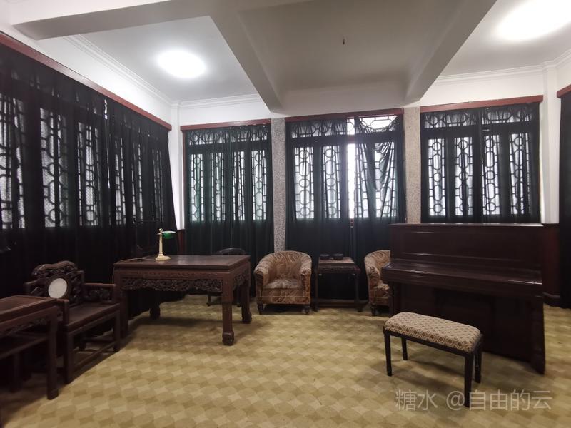 小洋房位于文昌阁东侧,负山面溪,西式三开间平顶楼房,房顶水泥平台四周栏杆护卫,可乘凉赏月,览远山近水。