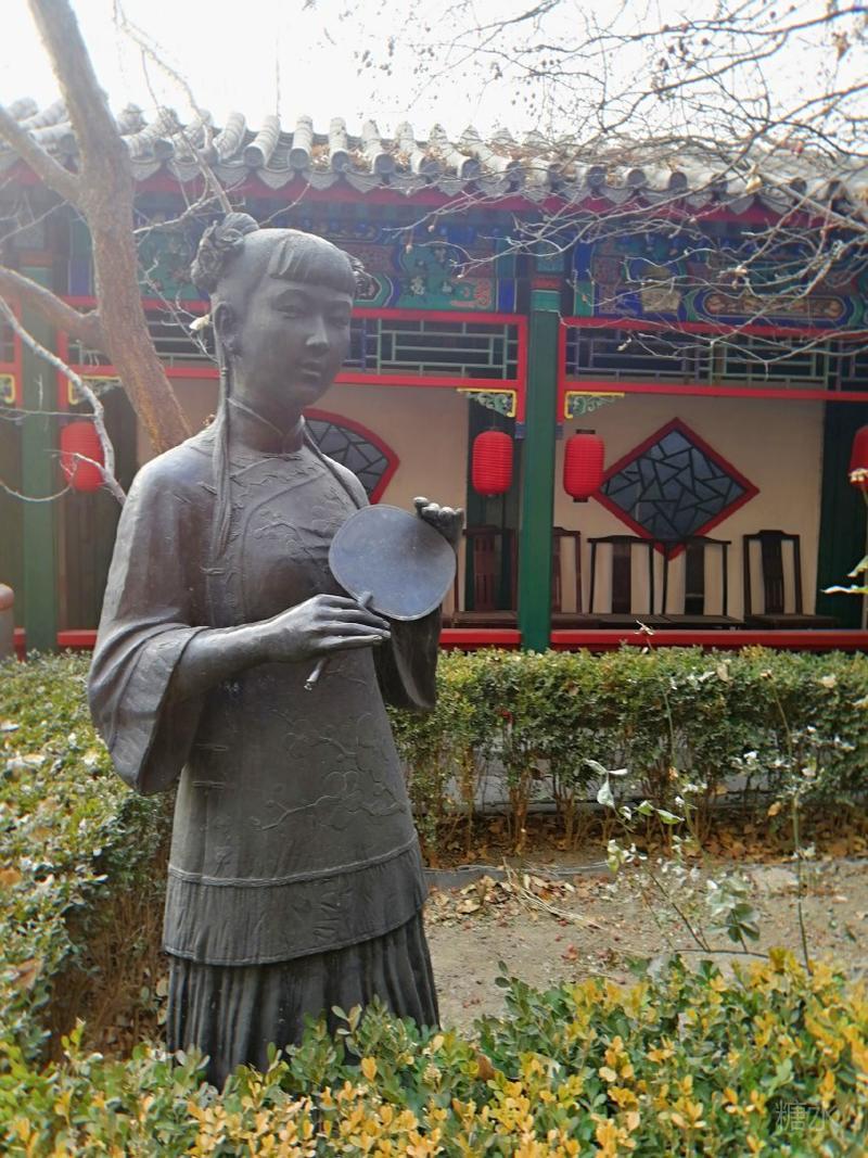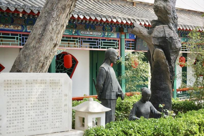 在海棠树旁有文鸾少女塑像 是纪晓岚心仪的情人 他们两小无猜青梅竹马 但由于纪晓岚父亲从中作梗 文鸾抑郁成疾抱恨终身 纪晓岚为此写下诗云: 憔悴幽花遽可怜 斜阳院落晚秋天 词人老大风情减 犹对残花一怅然