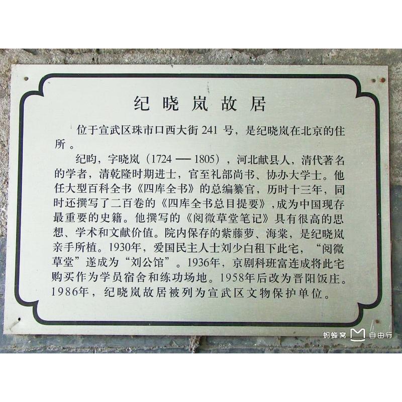 2019-3-18在北京城南虎坊桥附近 有一个值得游览的去处 ——纪晓岚故居 一个两进古色古香的四合院 纪晓岚曾在此居住六十多年 著名的《四库全书》和 《阅微草堂笔记》撰写于此