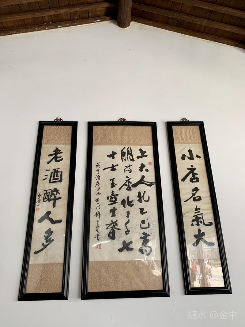 著名作家李准来到咸亨酒店,酒酣之际留下“小店名气大,老酒醉人多”的感叹,著名漫画家华君武题写“酒逢咸亨千杯少”。