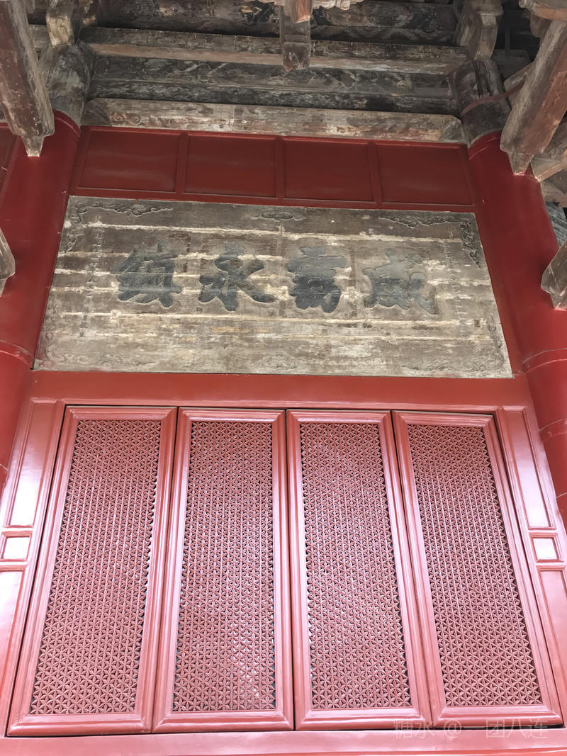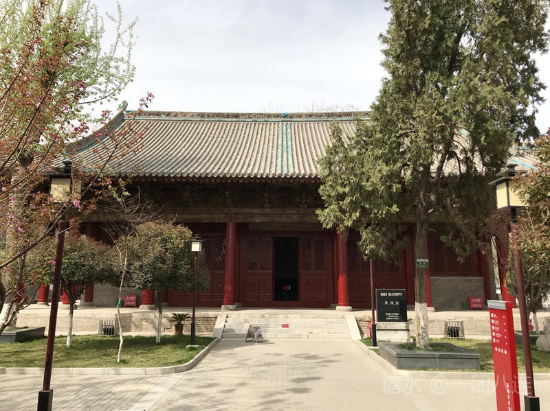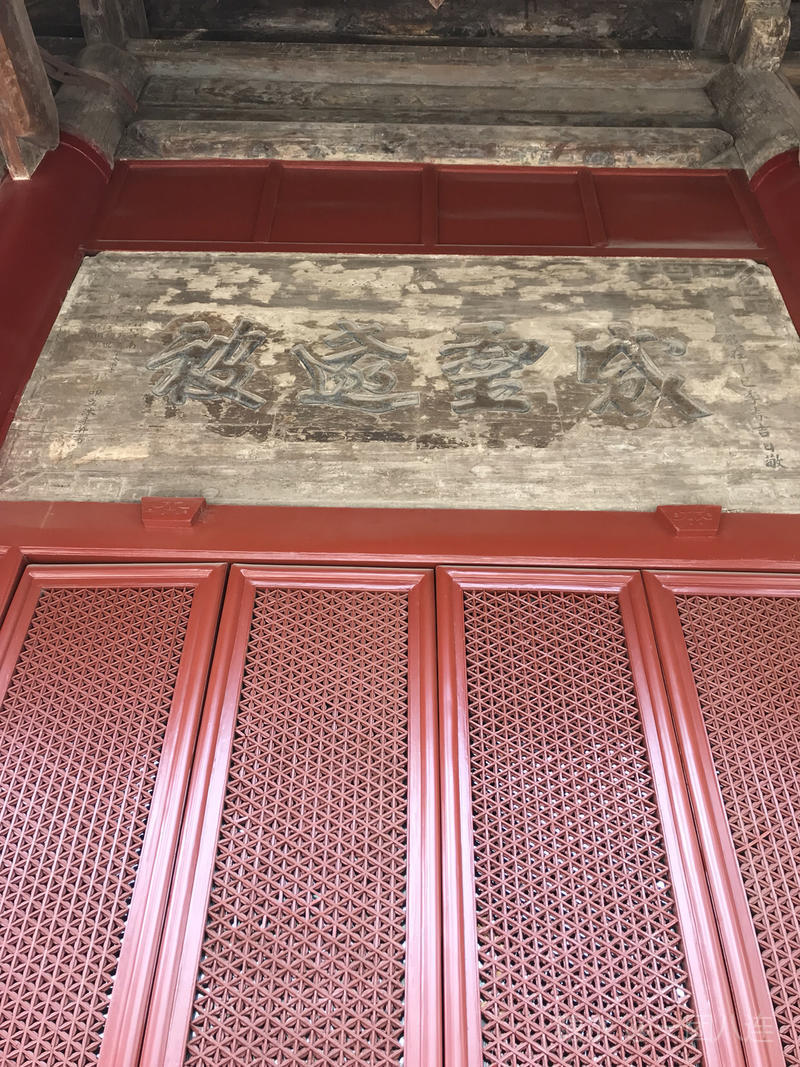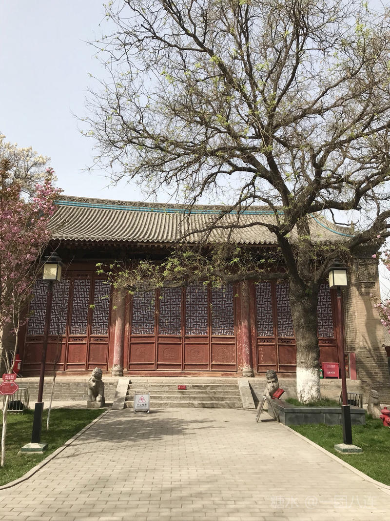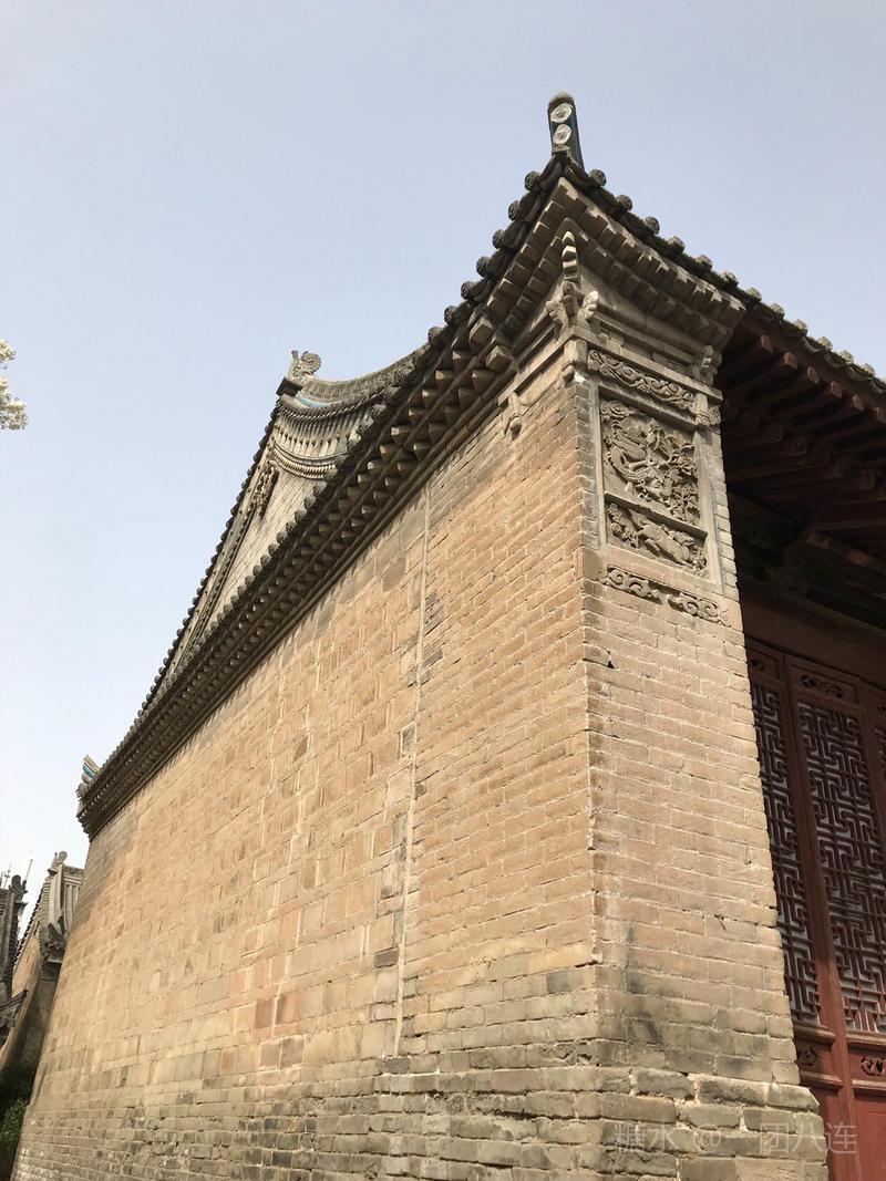 二殿。较大殿规模较小,其供奉的是东岳大帝的夫人,殿面三开间,建筑上有雕花装饰。 殿内有壁画残存,因里边正在修缮不开放,所以不能参观。