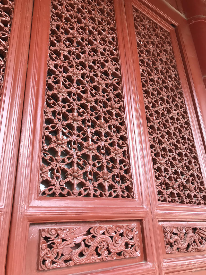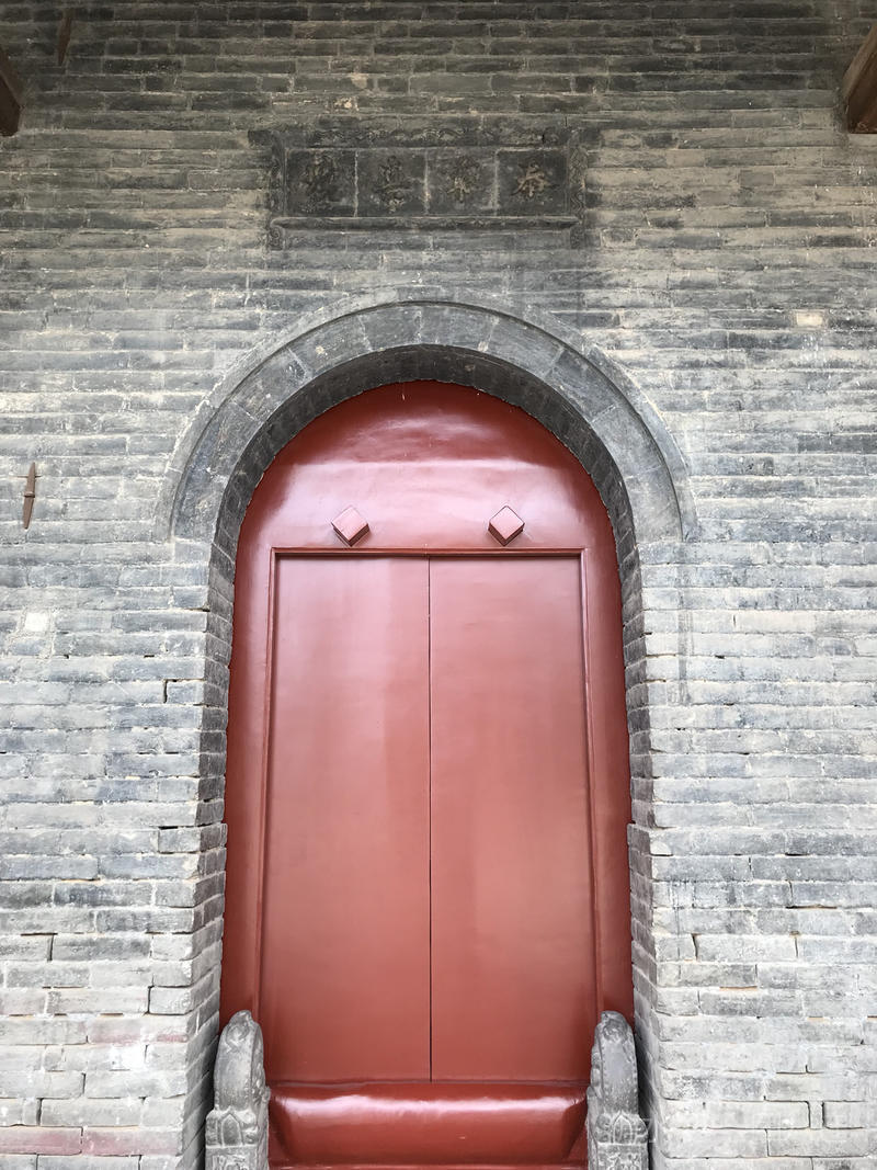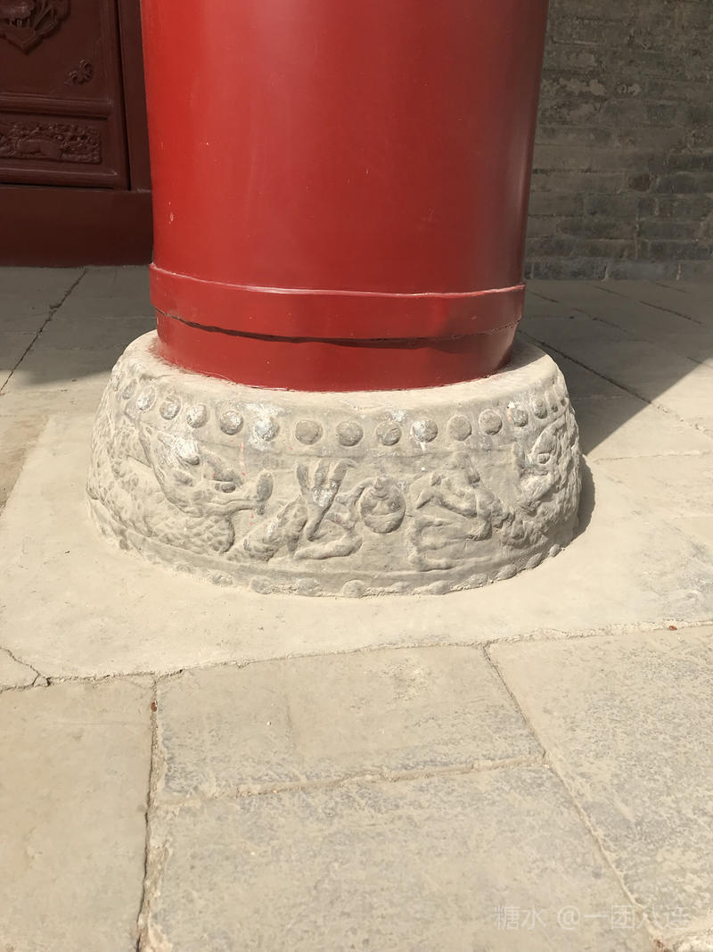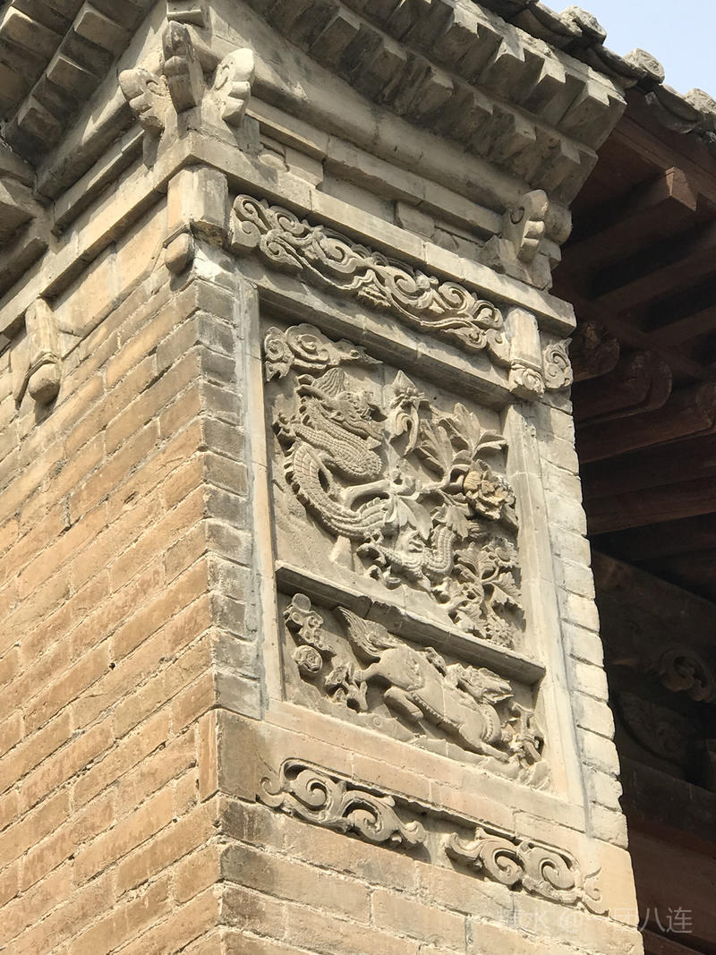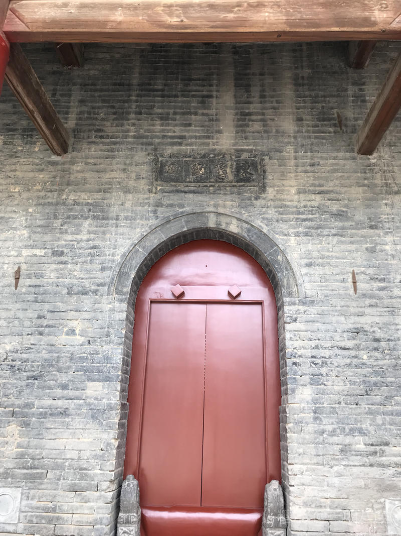 二殿。较大殿规模较小,其供奉的是东岳大帝的夫人,殿面三开间,建筑上有雕花装饰。 殿内有壁画残存,因里边正在修缮不开放,所以不能参观。