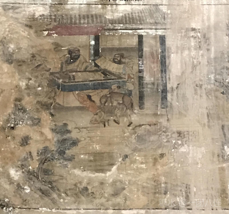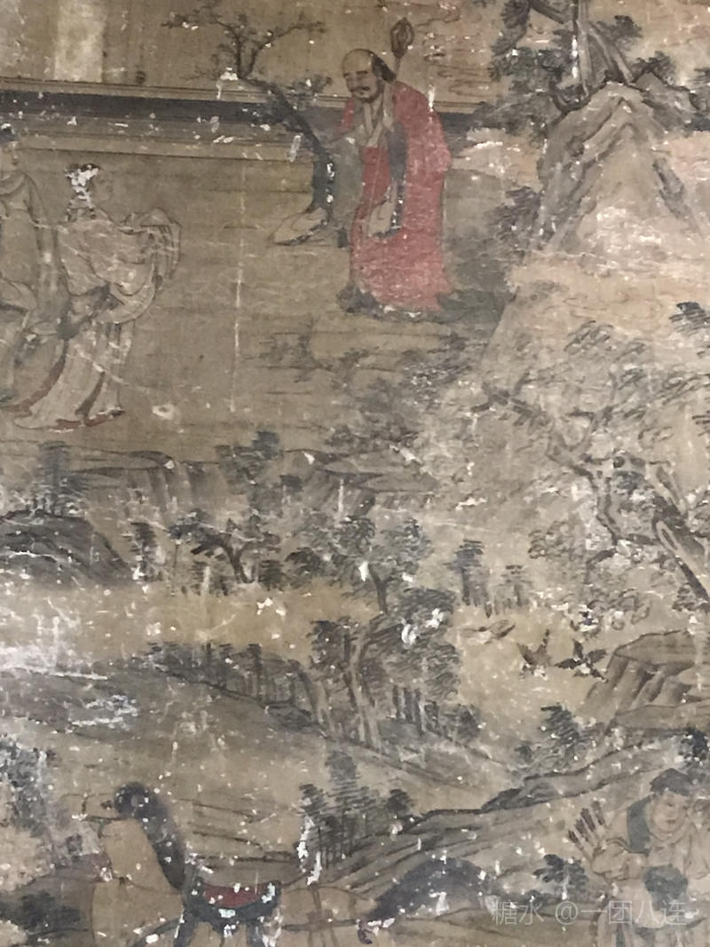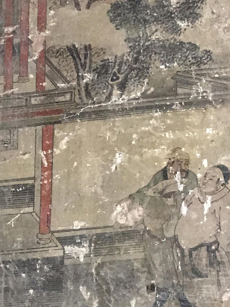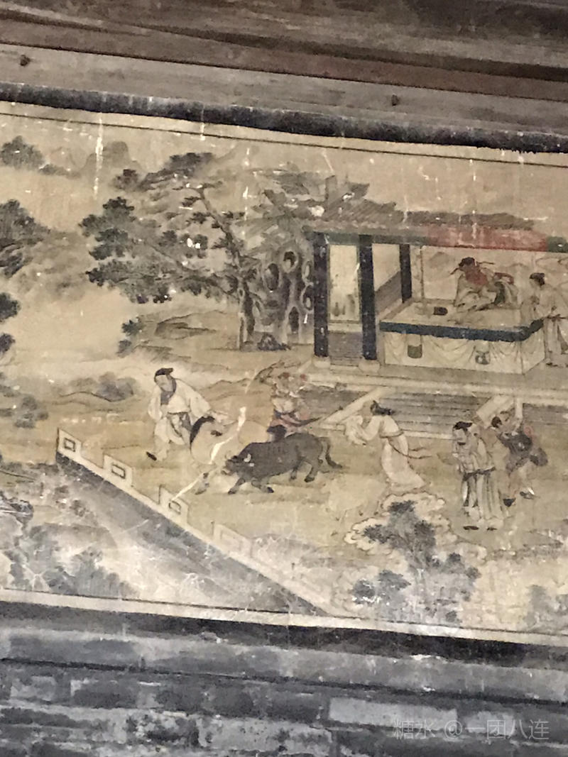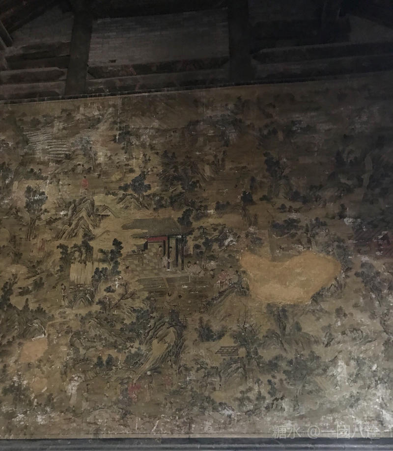 由于大殿内光线昏暗,壁画大都看不太清楚,好在大殿内有文管部门照的照片,这些放大后展出的壁画照片,画面清晰多了,每个照片都有文字说明。