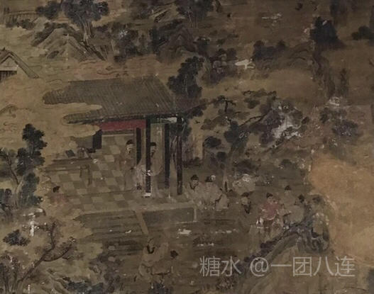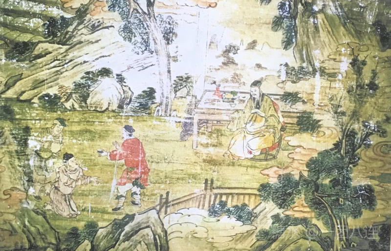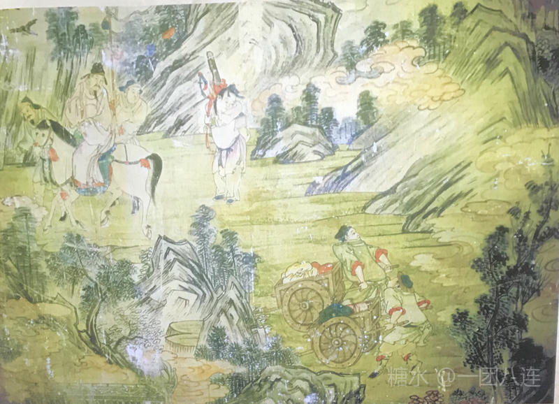 财帛、积财司。“常留盈余,以备不足”是中国传统的居家理财之道。此画场景中有六个人,其中一人骑马,似一官人,旁边有三人,一人牵马,一人持节,一人身背琴、剑、书画。另有二人各推一车,反映正在运输财务的场景。