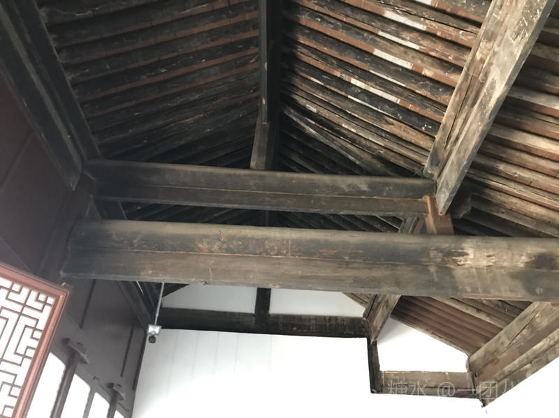 三殿内及回廊的房梁。房梁结构完全按营造法式构建,尽显古代建筑的特点。