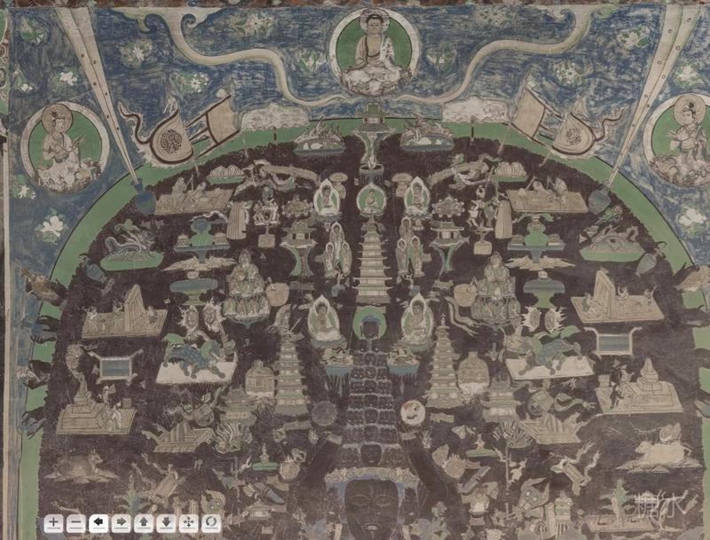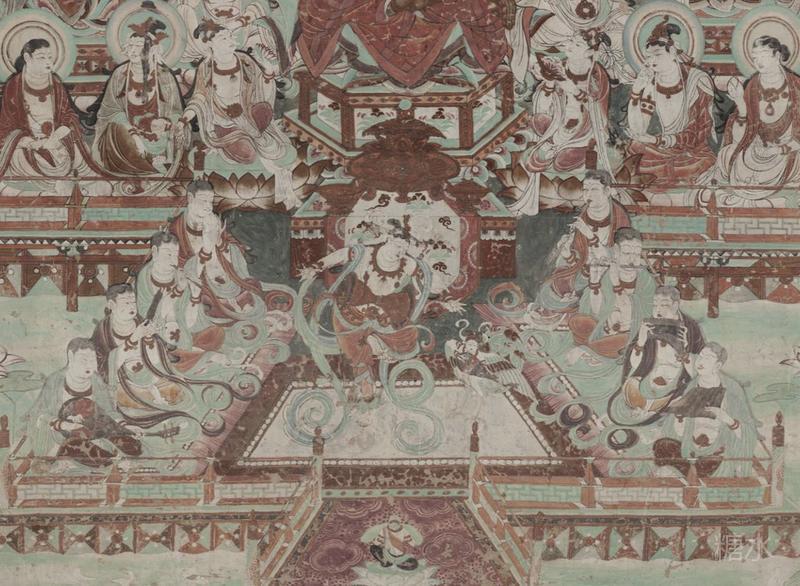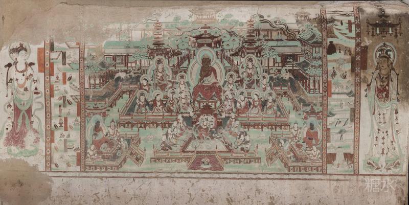 25号窟,元代,吐蕃时期,两大幅经变画,观无量经变(胖灵活舞者) 弥勒经变。