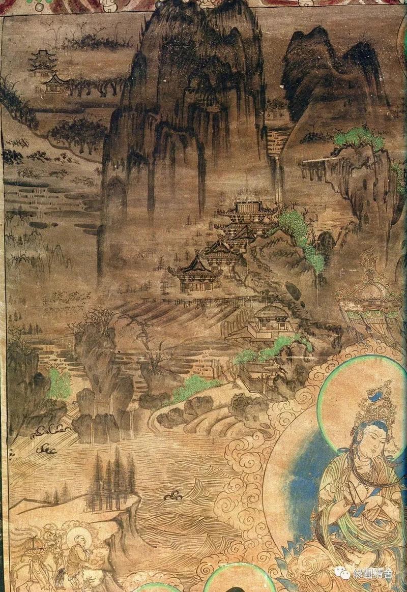 3号窟,普贤变,山水画和人物画的结合典范。51面千手千眼观音经变,手拿共166种器物。