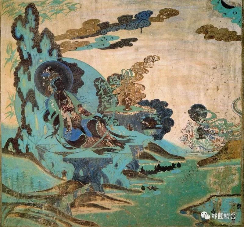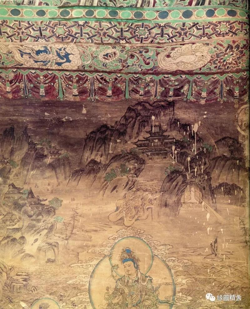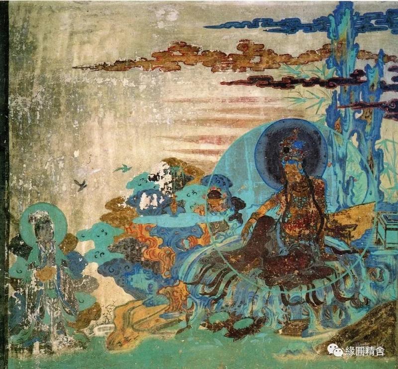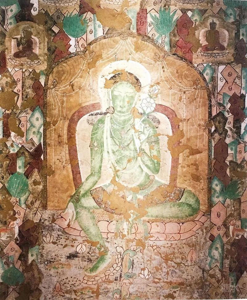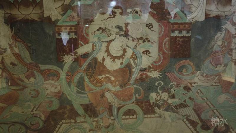 印象深刻的是2号窟,一副色彩绚丽的水月观音壁画,通身晕染的绿色,观音婀娜的身姿。