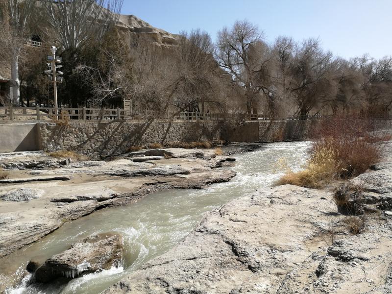 一早出发去东千佛洞,位于瓜州锁阳城遗址附近,清晨的寒冷在锁阳城景点服务区领略了。一片荒漠中,寒风凛冽更增添了一份孤寂。