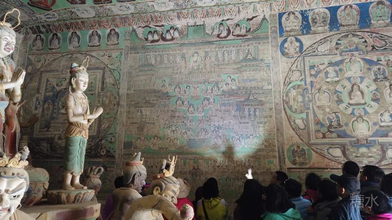 下午去榆林窟,是西夏(公元11~13世纪)艺术的一个分支。 开创于初唐(776~781年),盛于吐蕃,终于元代。