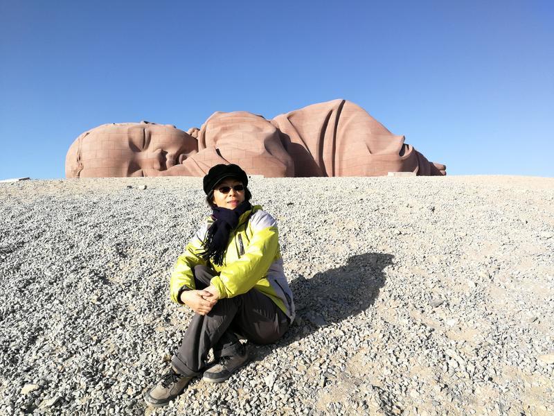 回程去敦煌经过大地之子雕像,沙漠里一个躺着的孩子,显得有点孤寂。