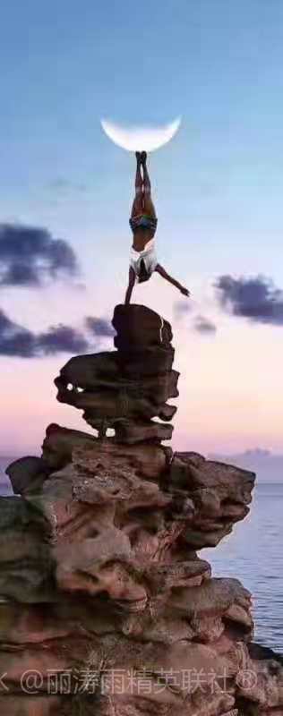 七绝 . 晨练 文/天高云淡 海边礁石磊奇山,单手倒撑天地间。 双脚托蟾轻蹴就,梦中弯月绽新颜。