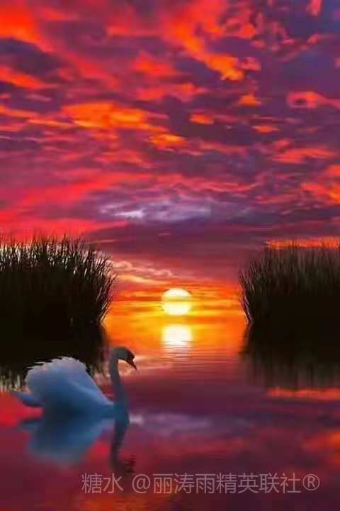 七绝 . 天鹅湖 文/天高云淡 秋水霞光一色裁,郁青芦苇晕红腮。 天鹅戏影翩跹至,一路诗情摇弋来。