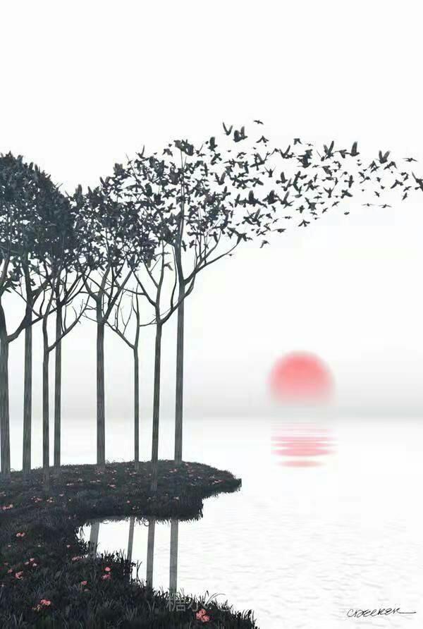 七绝 . 秋晨湖影 文/天高云淡 秋晓霞光波影苍,鸟栖疏树遇惊翔。 朦胧旷野梦清寂,叶落风凄客意凉。