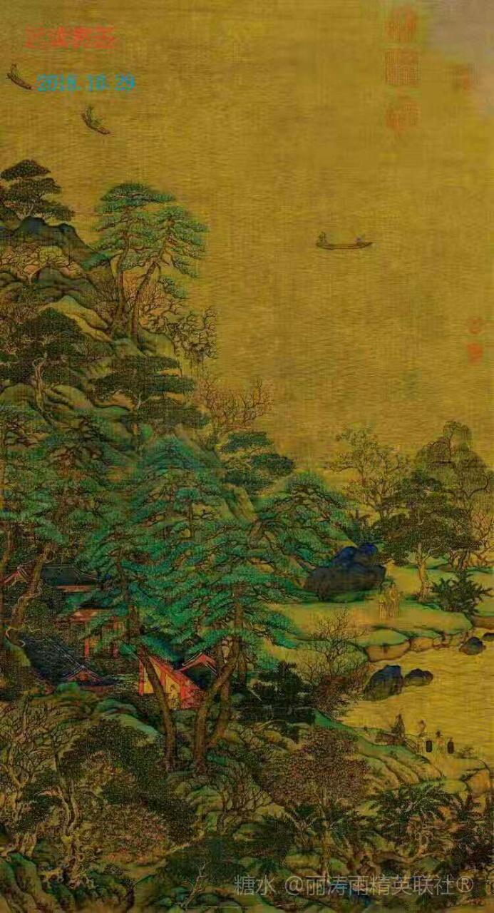 迟读赏画 五律.咏“江帆楼门阁图” 文/超然 隐约烟云染,微茫碧秀笼。 游人观景致,骚客诵衰翁。 芳树藏庭院,清波杳渺胧。 扁舟悠荡去,远水尽然中。 2018.11.01.