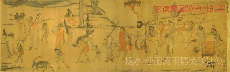 迟读赏画.阎立本职贡图 七律.题图 文/超然 贞观德威加异域,太宗文武尽风流。 名王幢盖恢宏大,番属携珍队伍稠。 万国朝君前帝殿,千秋载笔见华攸。 我今呼唤神州梦,时已飞扬夙愿酬。 2018.10.25.