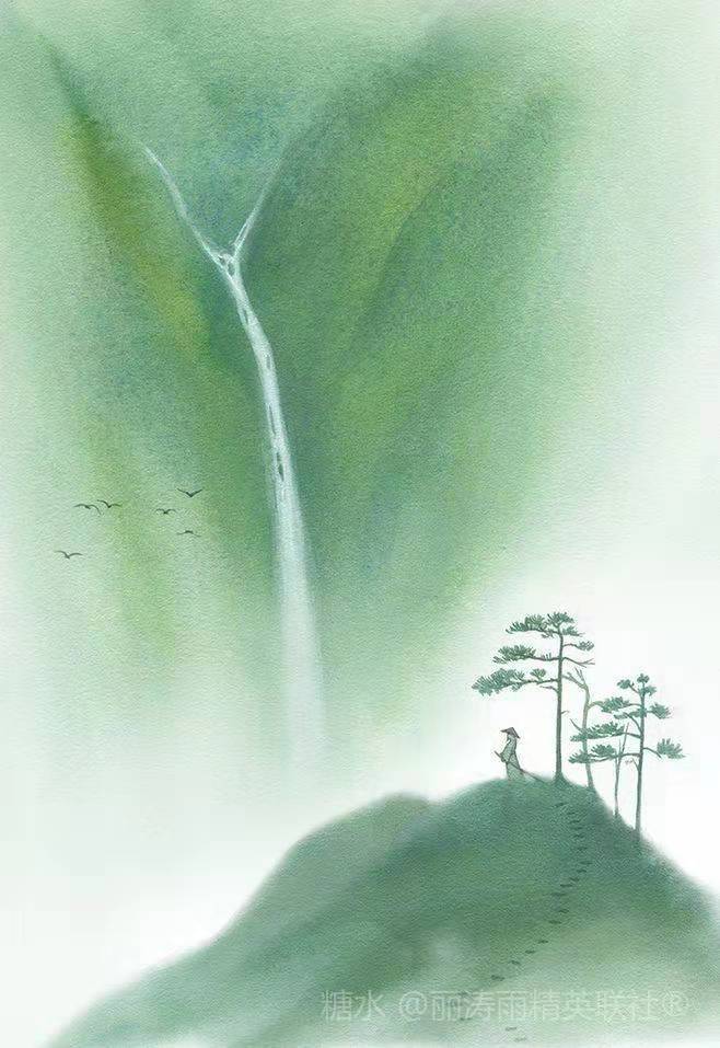 七绝 . 松山观瀑 文/天高云淡 青翠山间白练飞,携风裹雨雁惊归。 笠翁遥望歌磅礴,概叹人生渺影微。