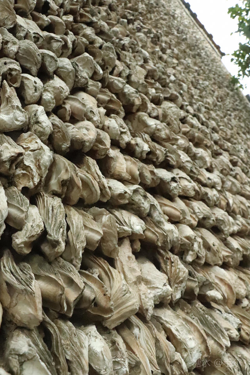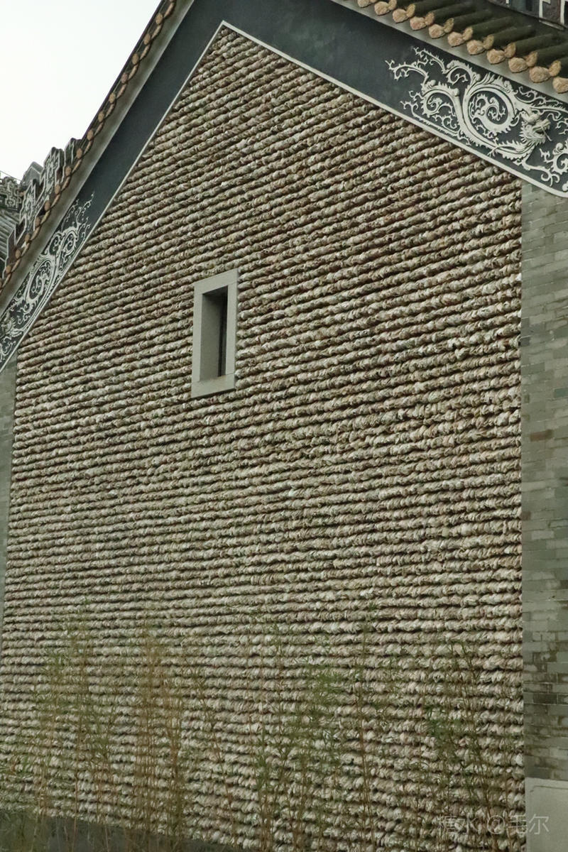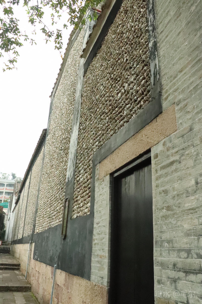蚝壳砌成的墙可是岭南建筑文化的一绝,每个蚝壳向下磊砌,逢雨天,雨水迅间流下,室内干燥,具说子弹也打不进。唯有憶憾的是没有一间完整的院子,只有为数不多的几壁墙。却也为古镇增添了色彩。
