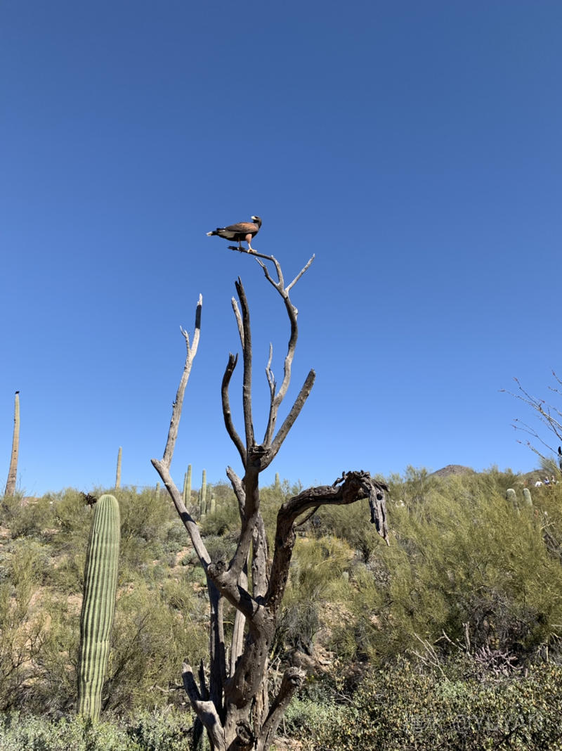 荒漠上的兀鹫和其它鸟类喜欢在巨人柱仙人掌树上停歇。