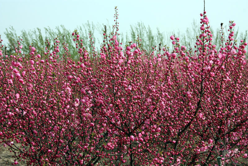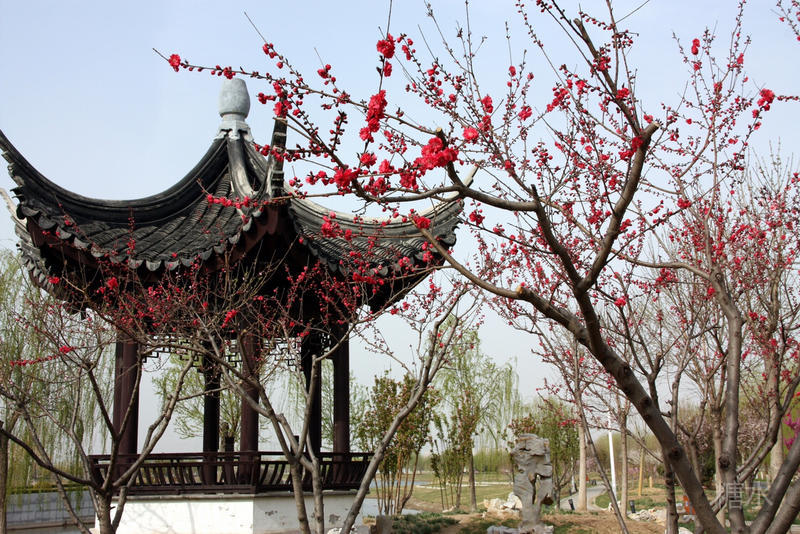 明代《群芳谱》记载:海棠有四品,皆木本,这四品指的是:西府海棠、垂丝海棠、木瓜海棠和贴梗海棠。垂丝海棠柔蔓迎风,垂英凫凫,如秀发遮面的淑女,脉脉深情,风姿怜人。宋代杨万里诗中:“垂丝别得一风光,谁道全输蜀海棠。风搅玉皇红世界,日烘青帝紫衣裳。懒无气力仍春醉,睡起精神欲晓妆。举似老夫新句子,看渠桃杏敢承当。”形容妖艳的垂丝海棠鲜红的花瓣把蓝天、天界都搅红了,闪烁着紫色的花萼如紫袍,柔软下垂的红色花朵如喝了酒的少妇,玉肌泛红,娇弱乏力。其姿色、妖态更胜桃、李、杏。