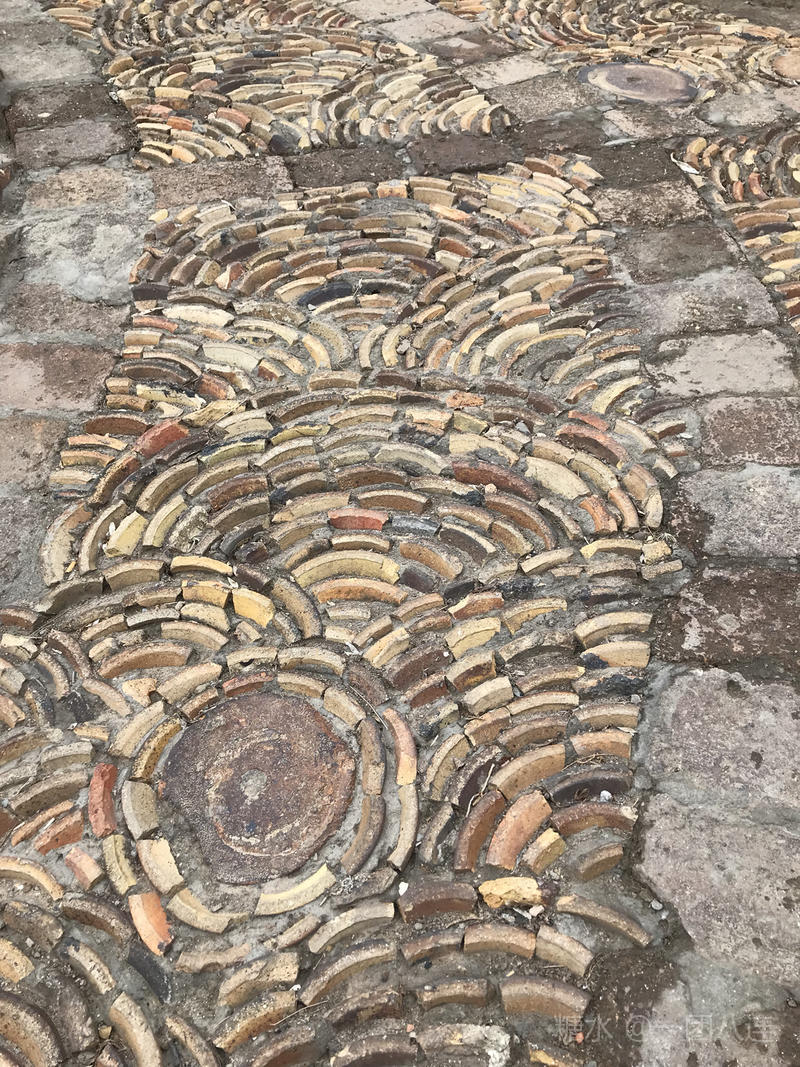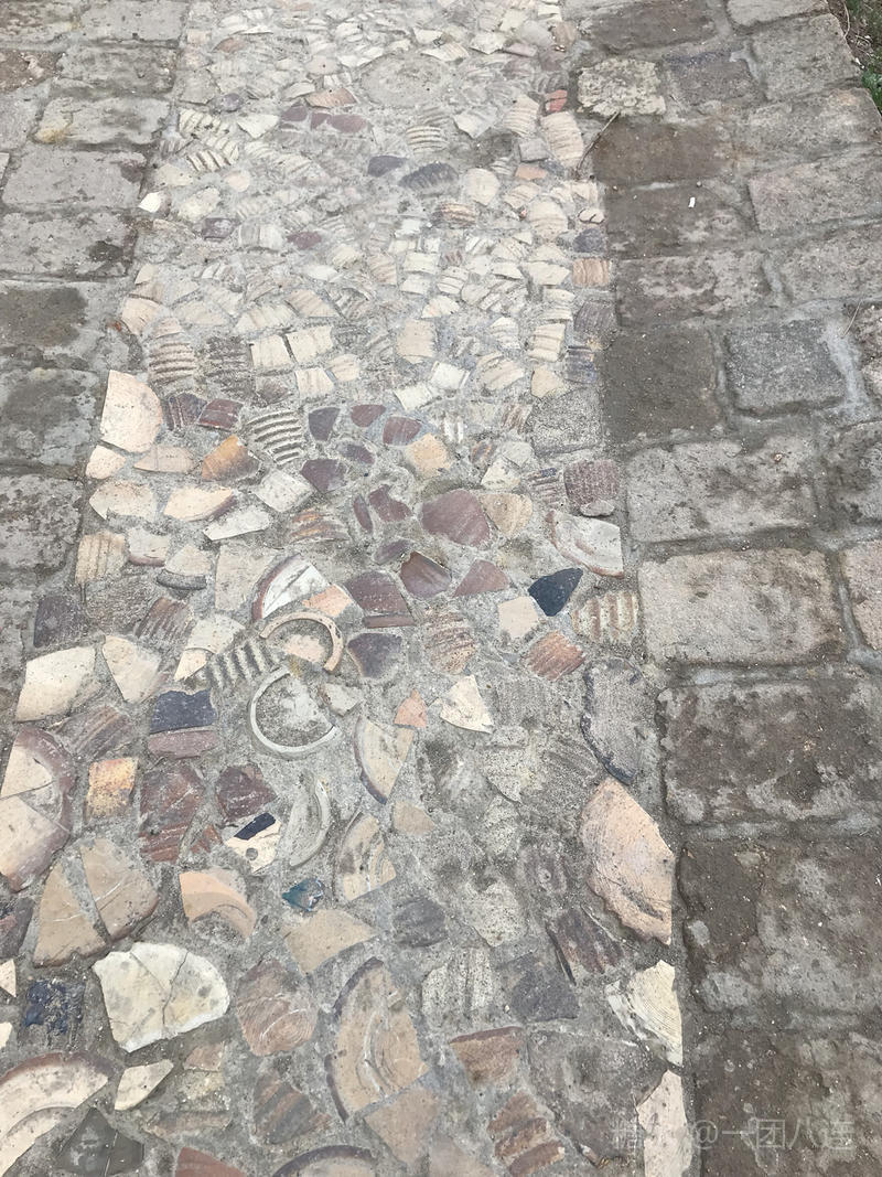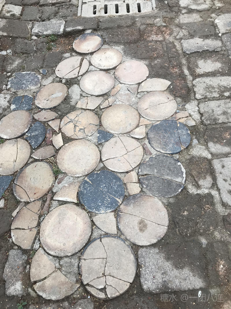 瓷片铺路又是陈炉一景,在陈炉的地面、水沟、屋顶台面上都是用烧废的瓷盘、瓷碗、匣钵铺就,既美观又实用。