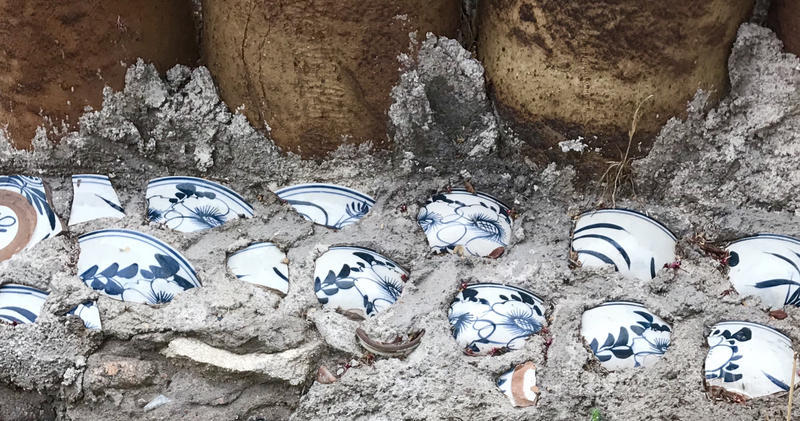 到这里最有特点是罐罐垒墙,瓷片铺路。