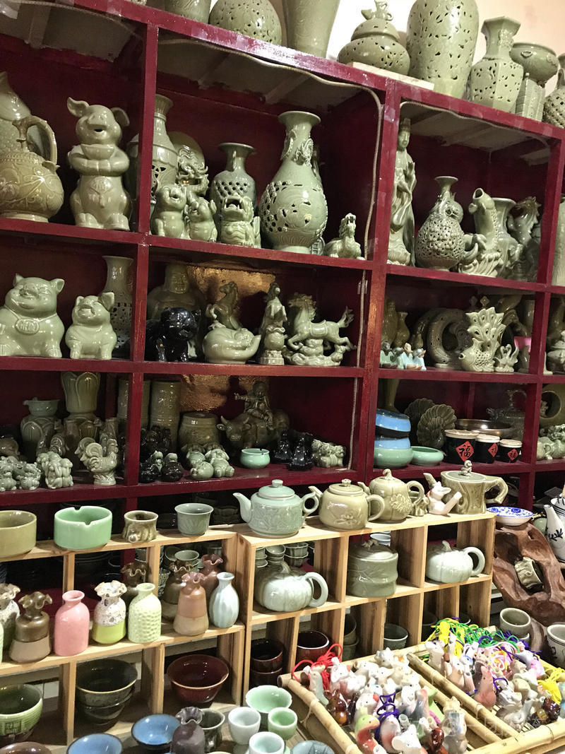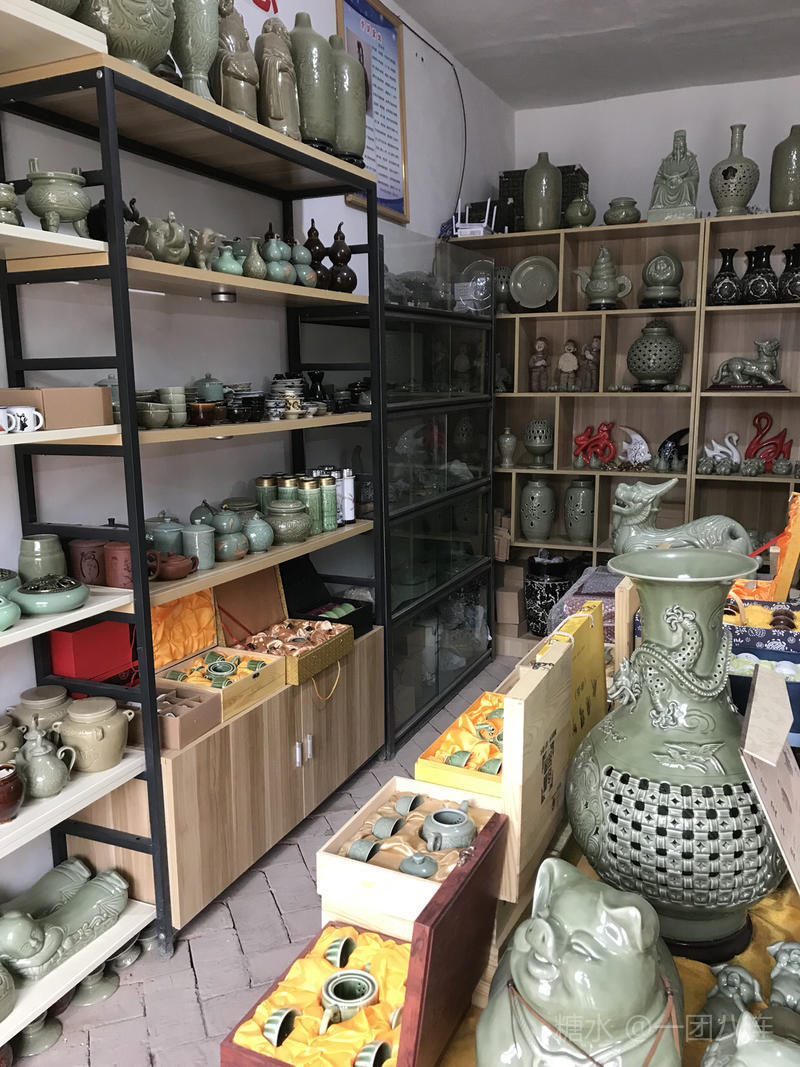 陈炉镇上几乎家家在自家房子里都有瓷器展卖,基本都是自产自销。销售的大多是碟,碗,罐,瓶或陈设器。