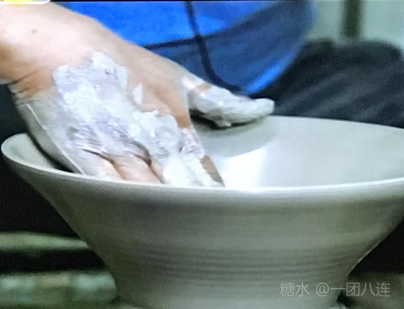 李家瓷坊的工人正在拉坯,他做的是一个碗。