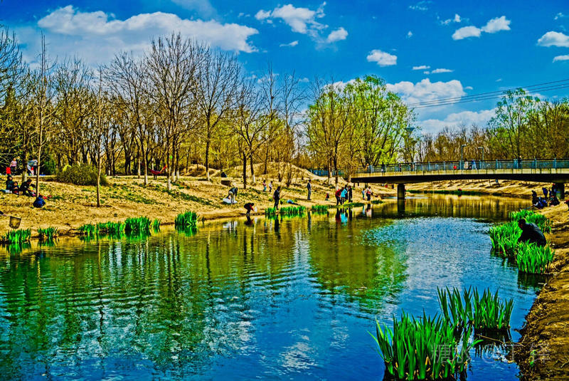 从北园北门入园,但见小河边许多游客,沿河玩耍,感受春的气息。
