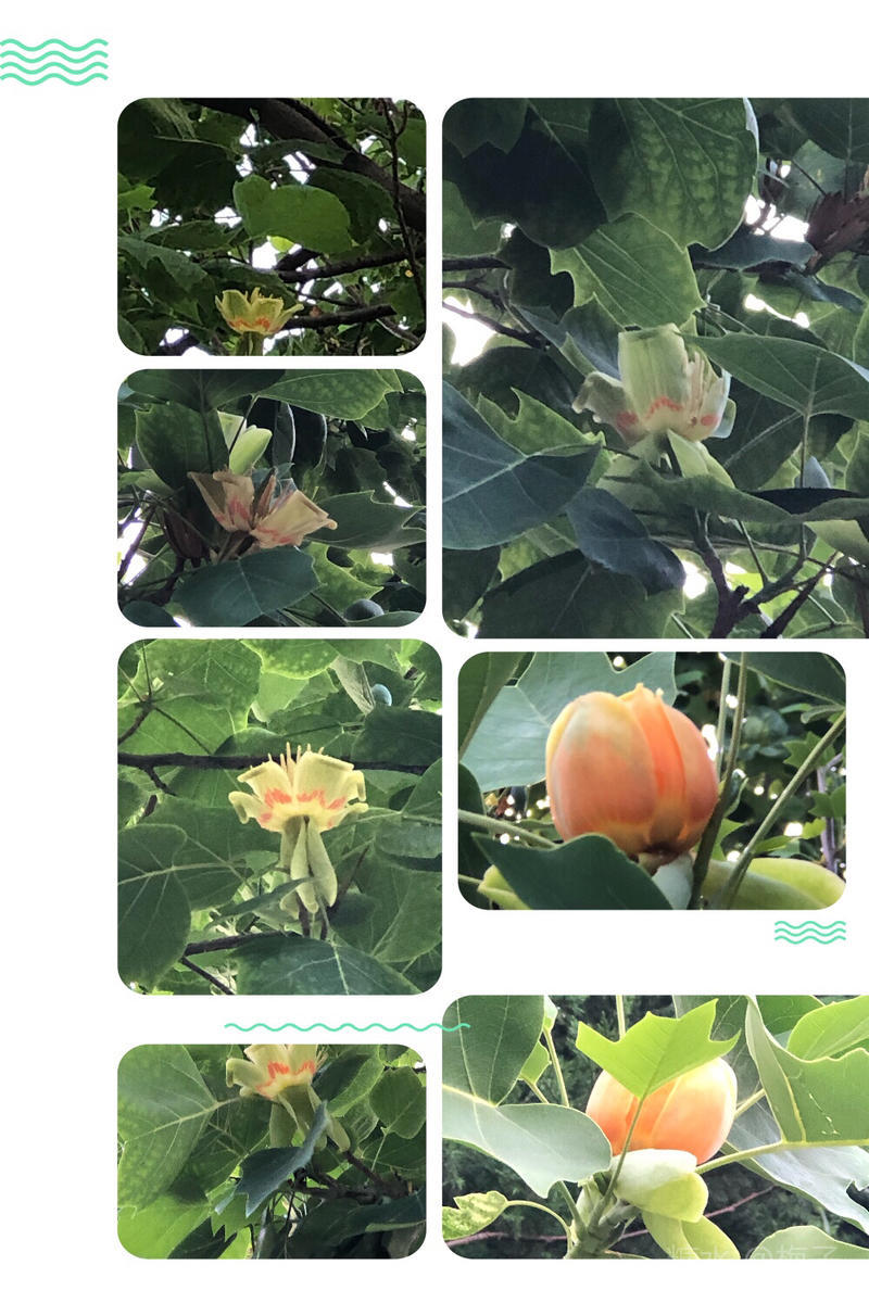 满树的叶子🍃 蓬勃着 等待着郁金香的花樽(鹅掌楸的花) 和秋日的斑斓……(黄马褂)