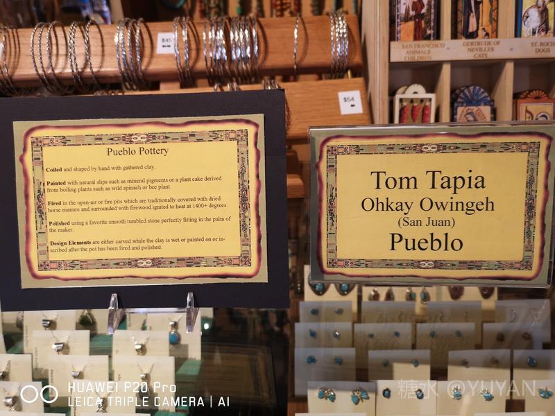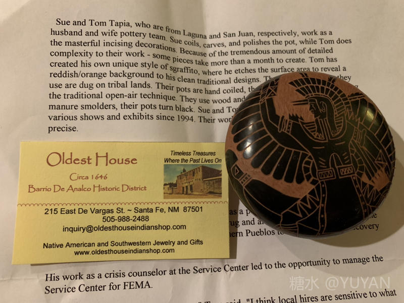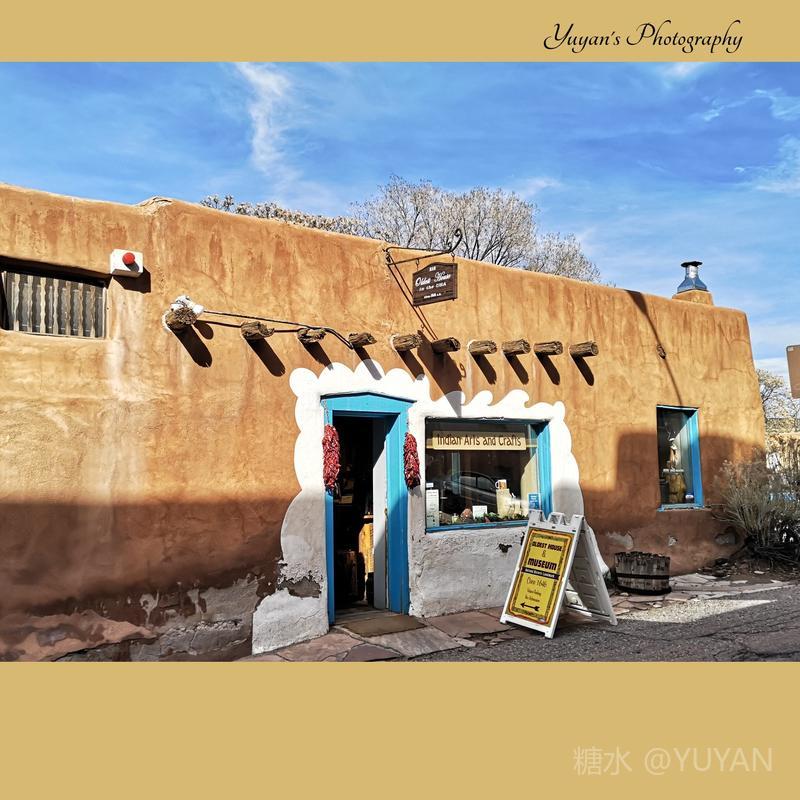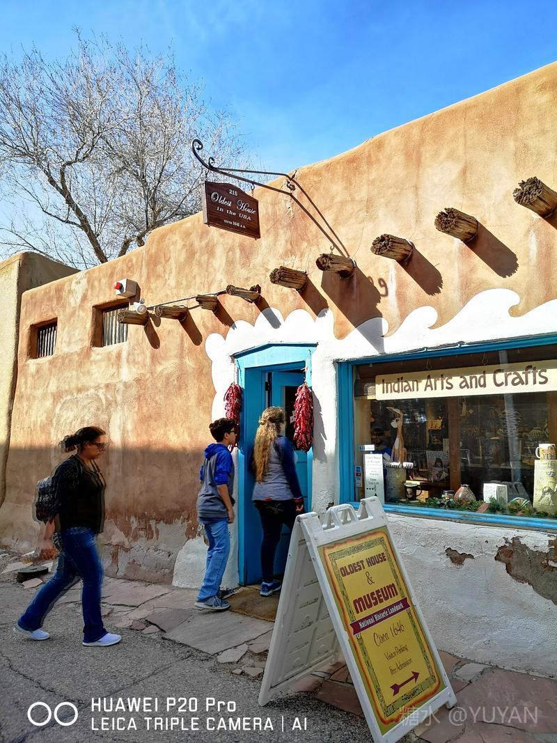 The Oldest House in America 美国最老的房屋。1200年左右原住民印地安人所建。大约在1435年左右印第安人离开了村庄迁移南方有水的地方。1598年西班牙人来到这里,在印第安人的旧址上建起房屋。它比圣塔菲建城还要早了几年。现在这里是一个小博物馆。里面还有小礼品卖。一些著名的当代陶艺家的作品居然这里也有! 我在这里用四百美金淘了一个现代印地安手工艺人制作的小陶器。