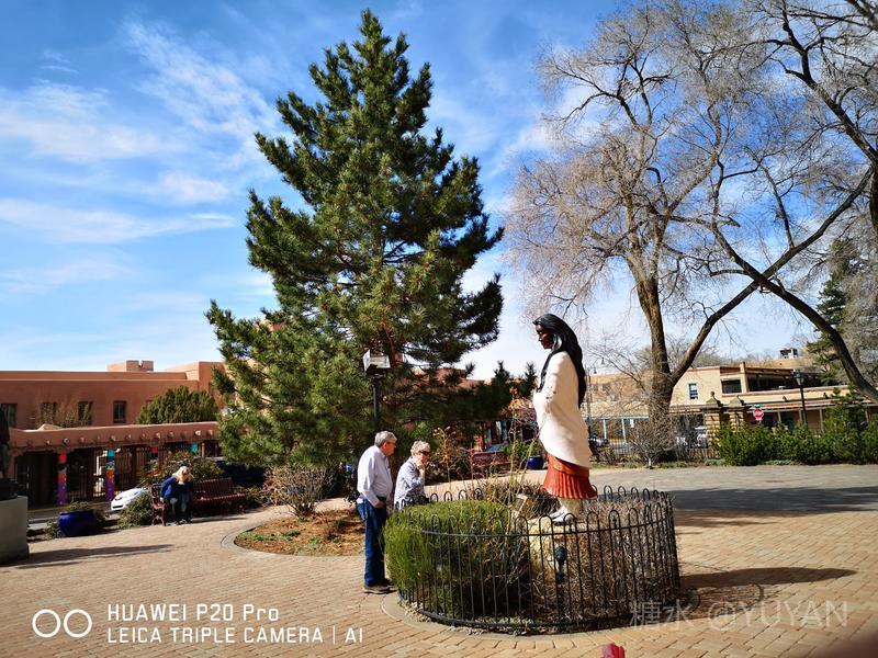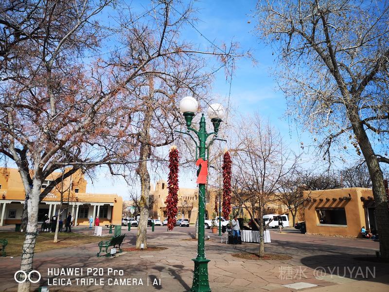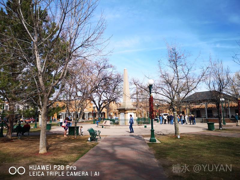 The Santa Fe Plaza — 圣塔菲广场,是圣塔菲的城市中心。四周都是历史建筑,博物馆,艺术画廊,工艺品展览室,餐厅,酒店等。