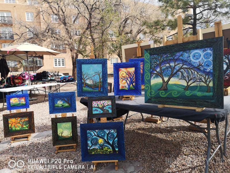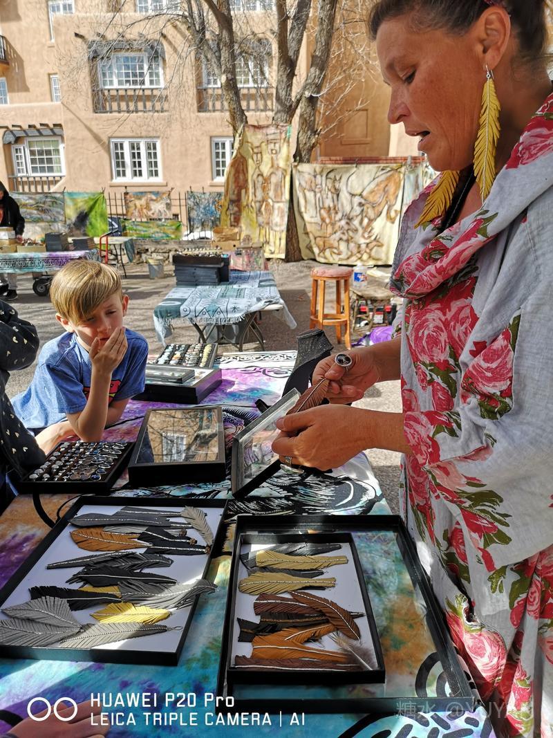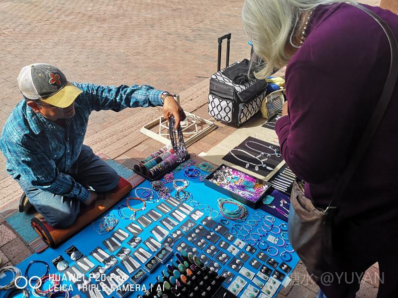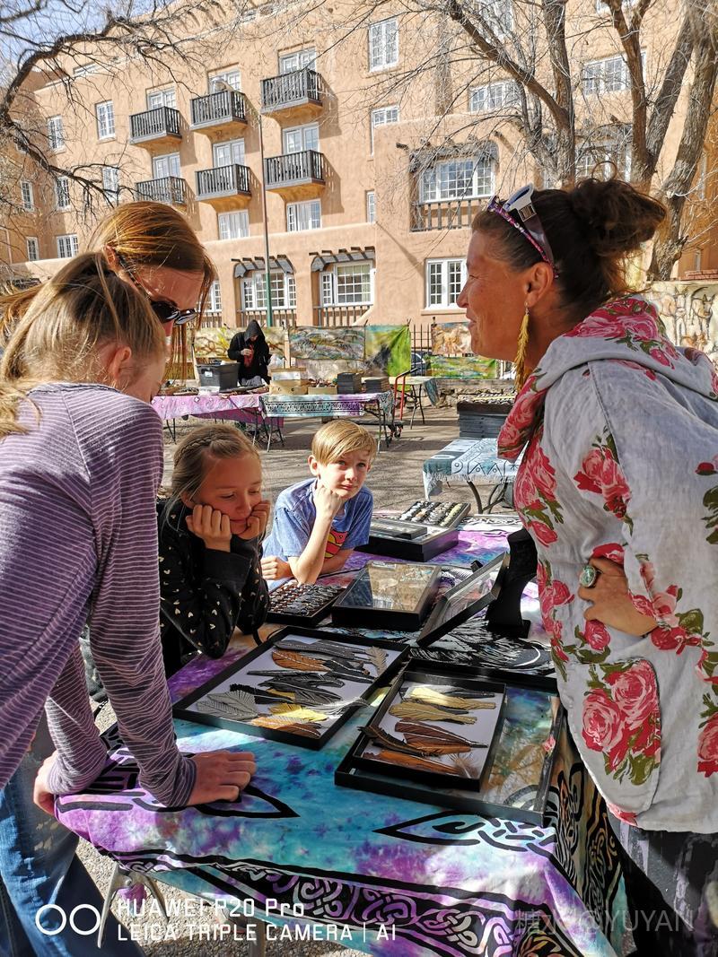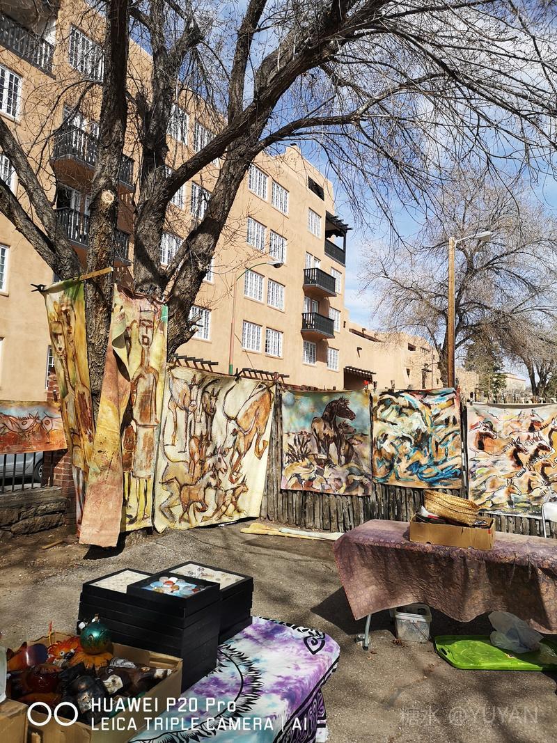 圣塔菲市的街边,有很多艺术家在展售自己的艺术作品。