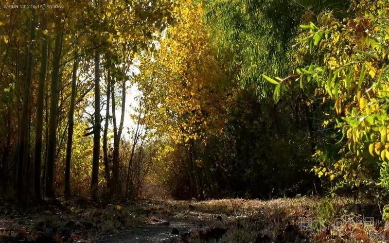 太阳岛的秋天是诗人的天地,退去了夏天的喧闹,它孤寂、凄凉、委婉。树叶在秋风的抚摸下慢慢落在大地,远远望去岛上是金色的世界,坐在树下,看夕阳孤独地映照残枝,袅袅炊烟扶曳飘向远方,世界在那一刻是虚无的,就像是另一个空间,那种意境只有身在其中才能体会到。