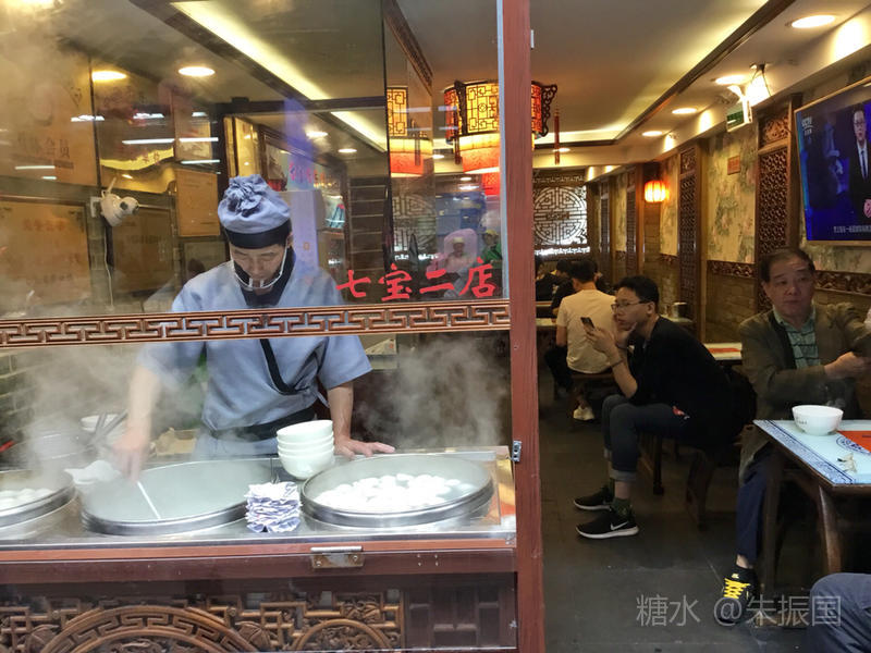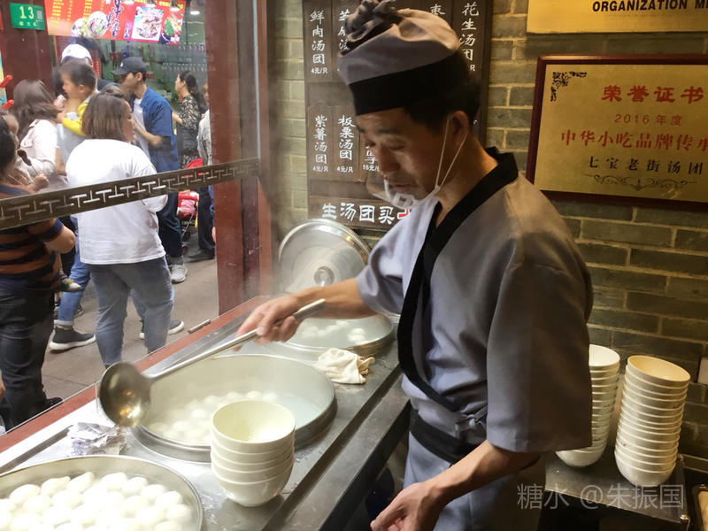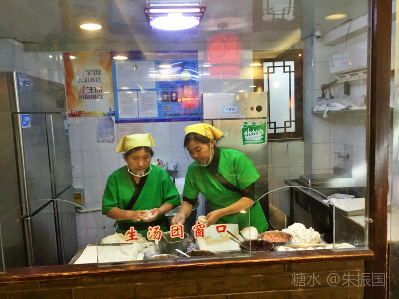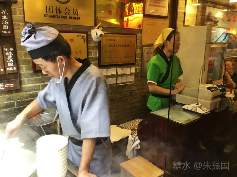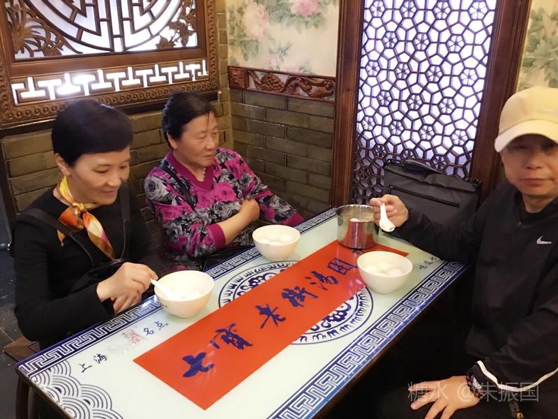 中午在汤团店打尖,大家都是两肉两素一芝麻,20元。