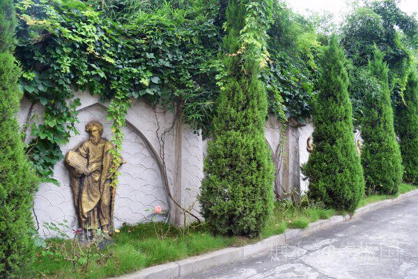 教堂西边的围墙上有耶稣十二个门徒的浮雕像。