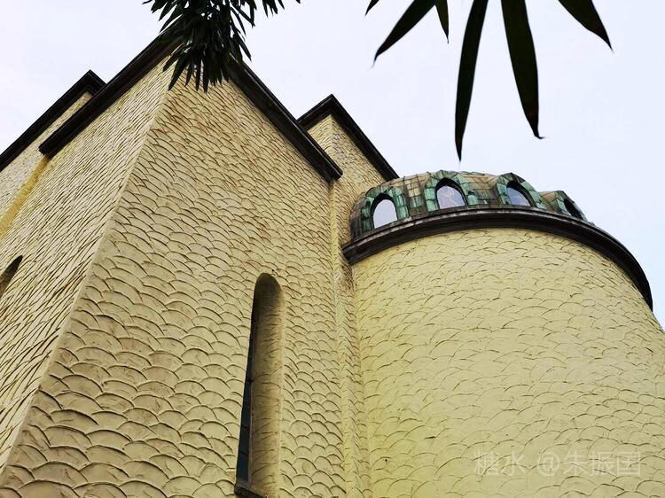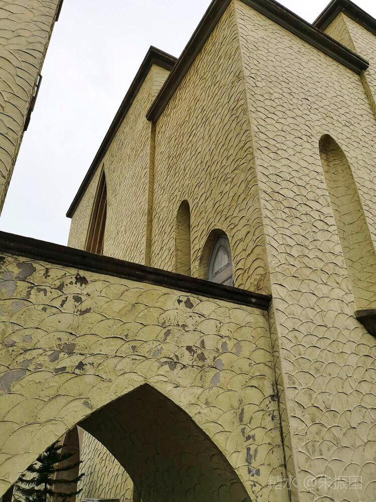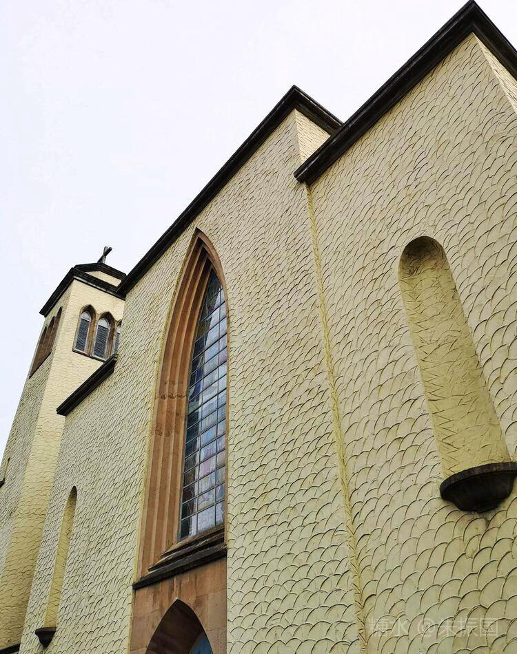 整栋教堂和钟楼的外墙,全部是这种水泥漆的鱼鳞状,可见当时建筑的时尚